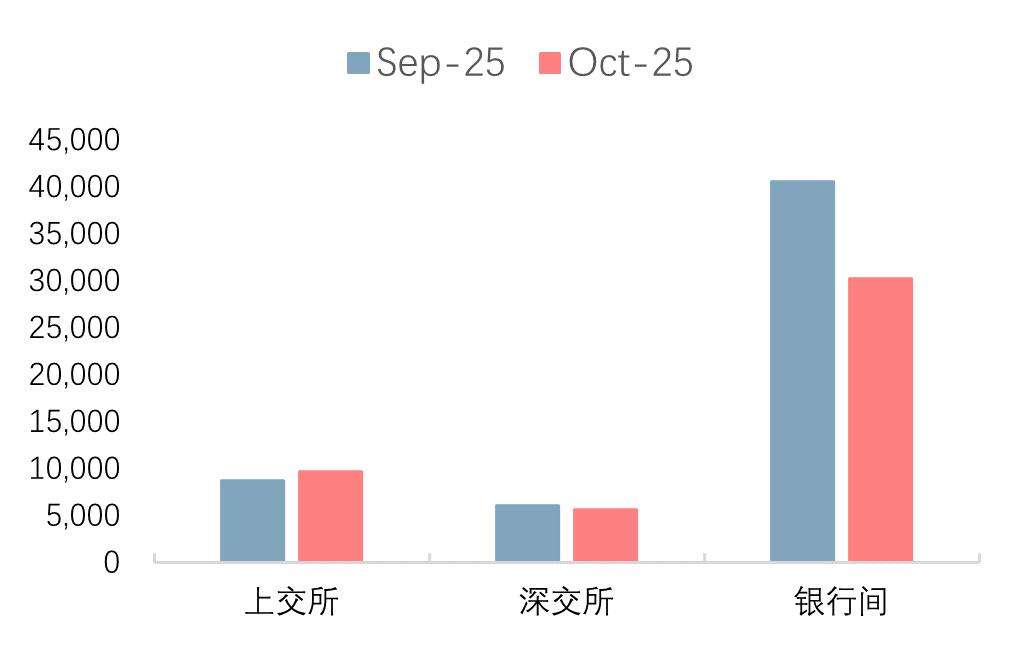 图表9:2025年10月各交易所成交金额(亿元)