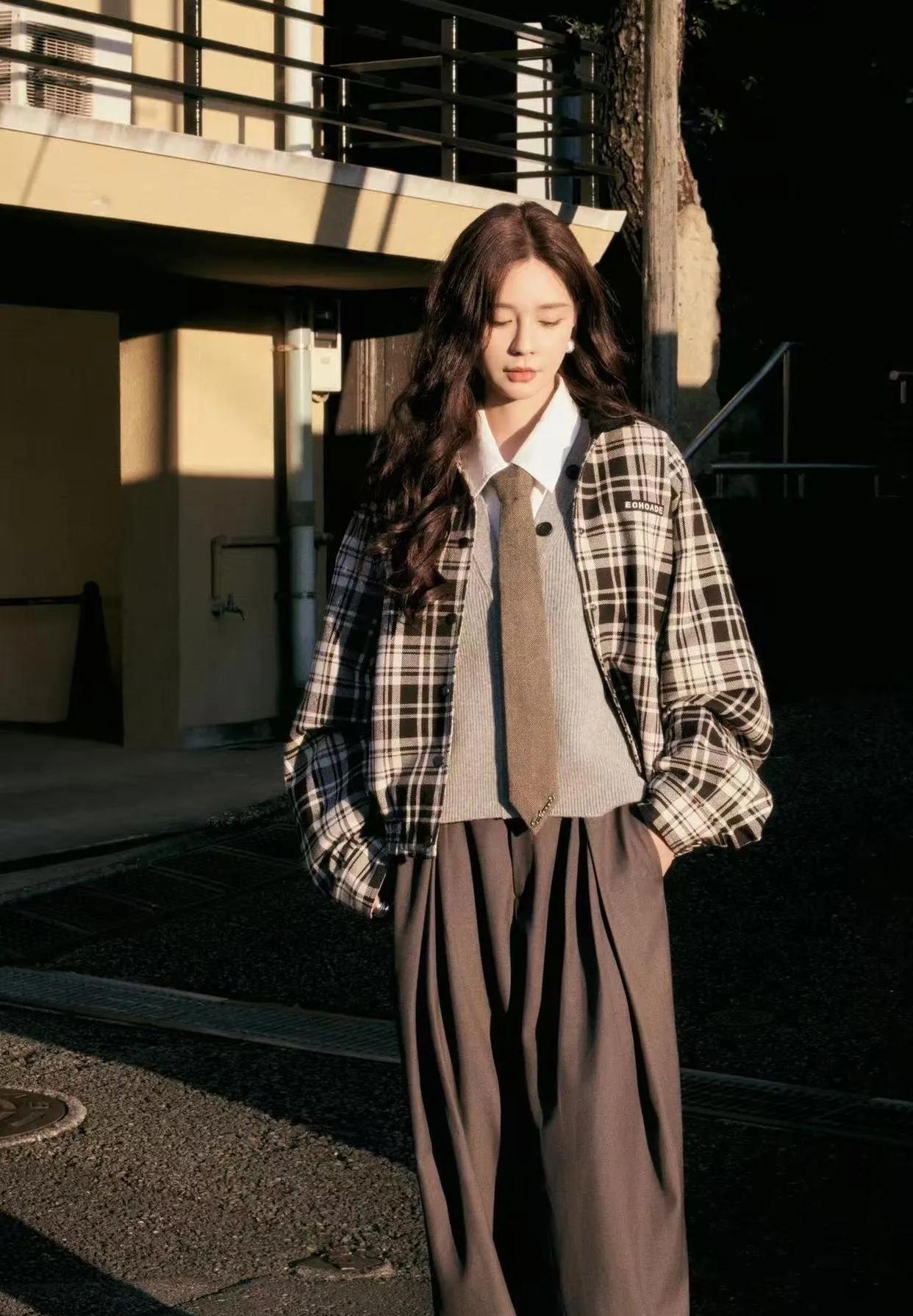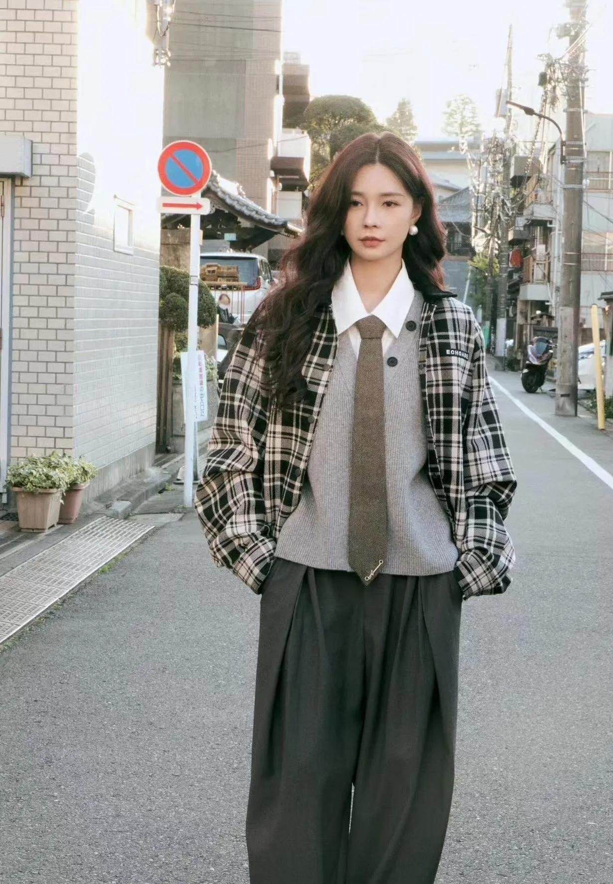 沈梦辰这穿搭公式,直接封神! 沈梦辰的秋日look也太会了——格子夹克叠V领马甲,配条垂感阔腿裤,领带一搭,学院风混着松弛感,时髦又高级! 这“叠穿+同色系”的小心机,日常照搬都能赢,穿搭高手实锤~ 沈梦辰穿搭
