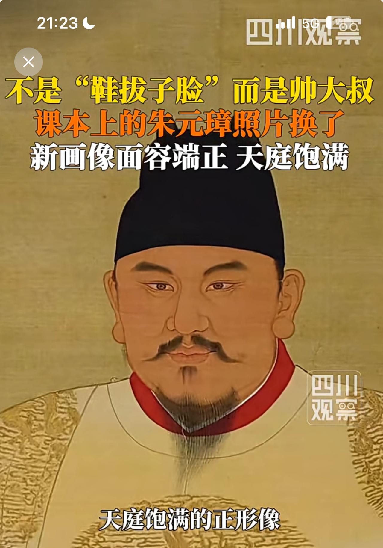 朱元璋照片换了,再也不是那个鞋拔子脸的丑八怪了,但是这能改变他残暴的专制本性吗?