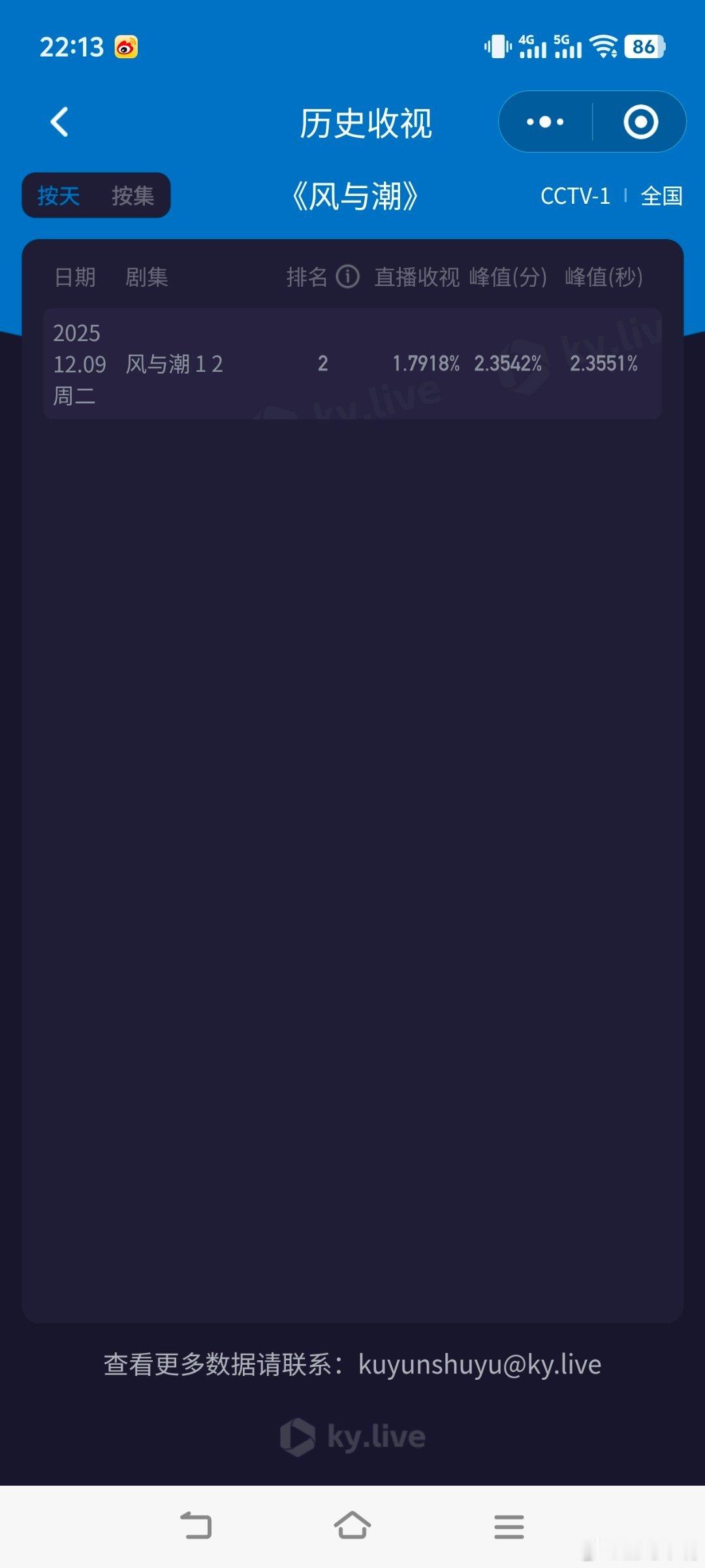 风与潮《风与潮》首播酷云峰值2.3551,平均1.7918,cvb估值1.791