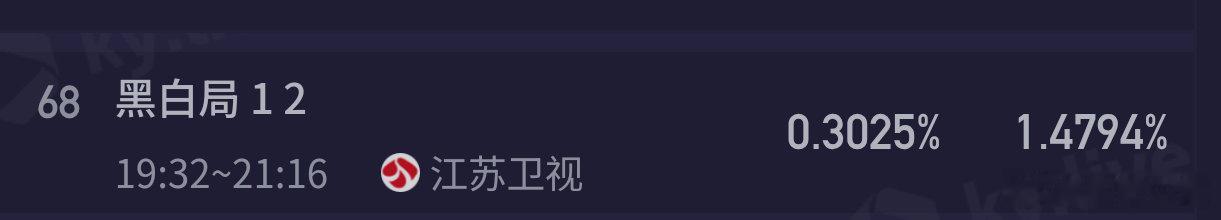 江苏黄金档上了《黑白局》,之前传的双轨看来真不上星了。