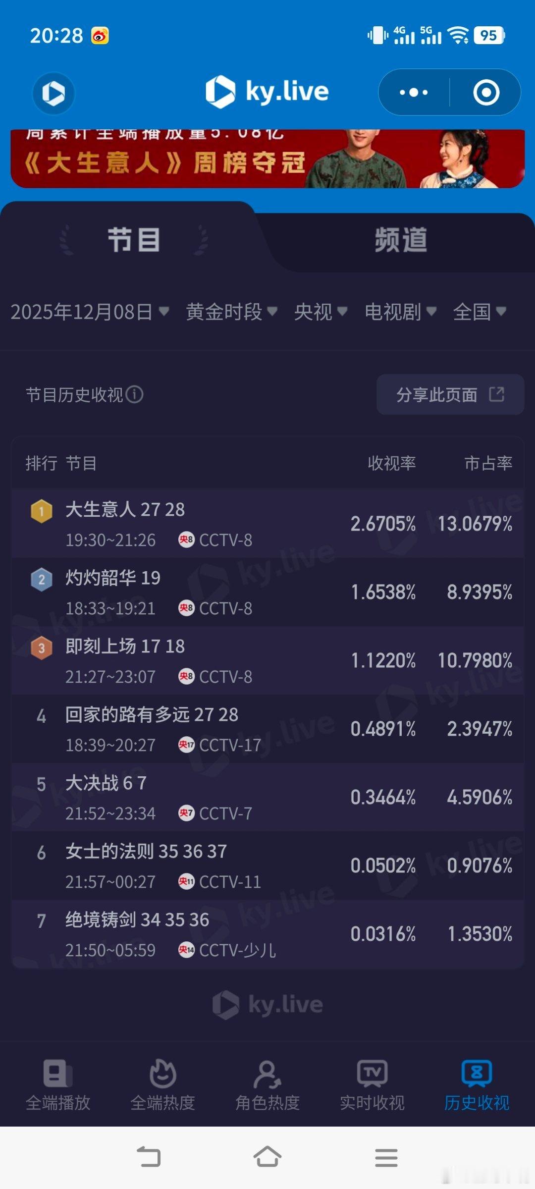 大生意人12月8日cvb收视日报大生意人2.306,酷云2.6705,系数0.863即刻上场1.330亦舞之城0.370,酷云0.3604,系数1.027四喜 0.301,酷云0.2776,系数1.084新一年又一年0.286,酷云0.2976,系数0.961凤凰台上0.216,酷云0.2847,系数0.759时差一万公里0.203,酷云0.2979,系数0.681