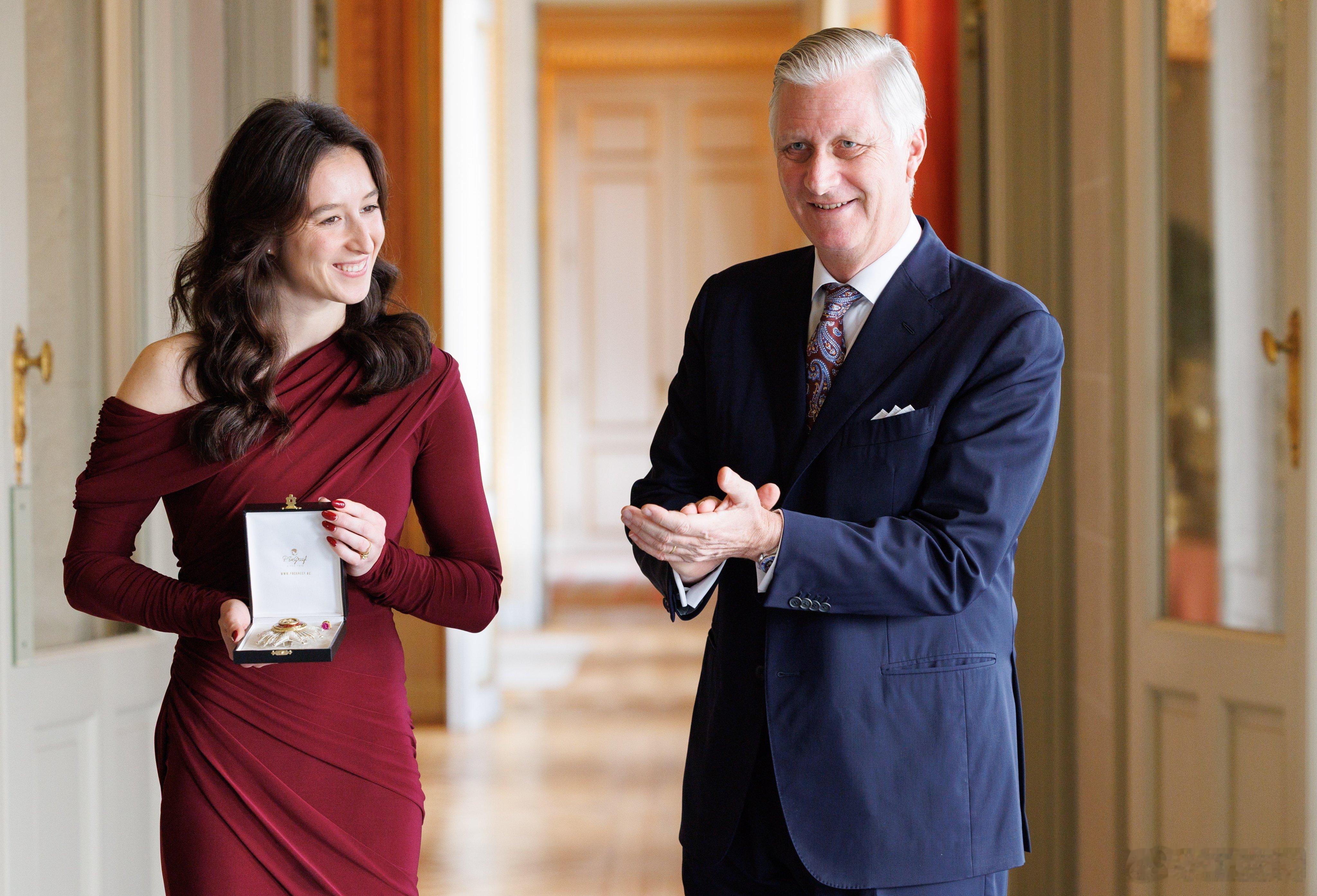 比利时王室 🇧🇪12月9日,菲利普国王授予尼娜·德维尔(Nina Derwael)利奥波德骑士团的高级军官勋章,表彰她在体育方面取得的惊人成绩。世界各国王室度娘说:2020年东京奥运会上,她以总分15.200分(难度分6.7,完成分8.500)夺得女子高低杠金牌,这是比利时首枚艺术体操领域奥运金牌,也是该国当届奥运会首枚金牌。