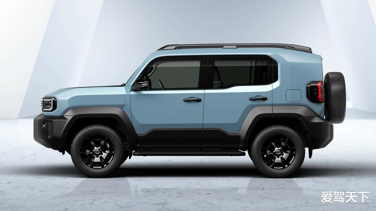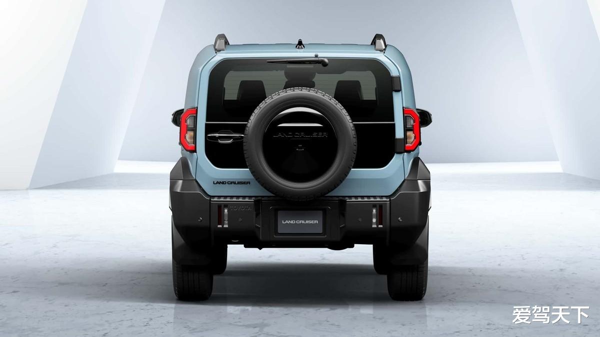 来到侧面,兰德酷路泽FJ运用大量平直的线条,勾勒出充满机甲风的车身造型,并可以看到加宽设计的C柱,搭配车顶行李架、机械式门把手以及十分朴素的熏黑轮眉。车尾部分,兰德酷路泽FJ保留了硬派越野车该有的属性,比如侧开尾门、外挂备胎。相比于普拉多兰,德酷路泽FJ的轴距少了270mm,来到2580mm,车身长度不到4.6m,最小转弯半径为5.5m。