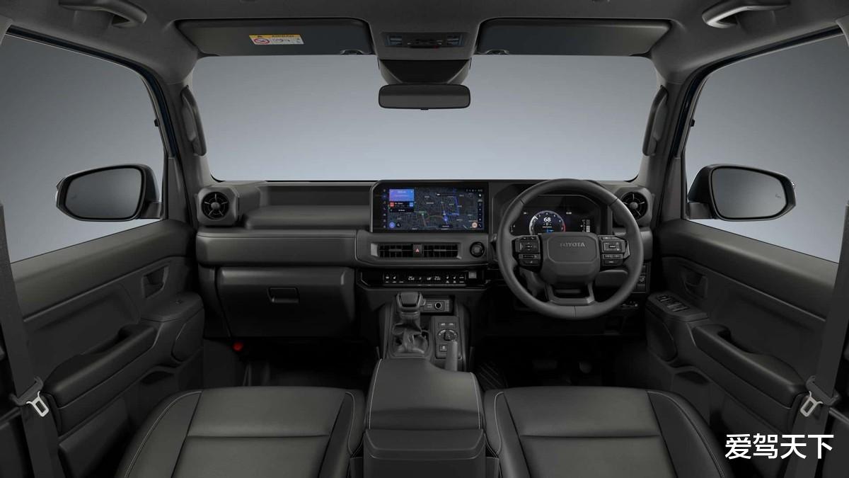 内饰方面,兰德酷路泽FJ使用与车身同样硬朗的线条设计,看上去极为平整,但有较强的塑料质感。新车的中控台采用双屏幕布局,但两个屏幕之间不相连且尺寸不大,而且还配有大量的物理按键、圆形空调出风口、传统手刹和鸡腿挡把。