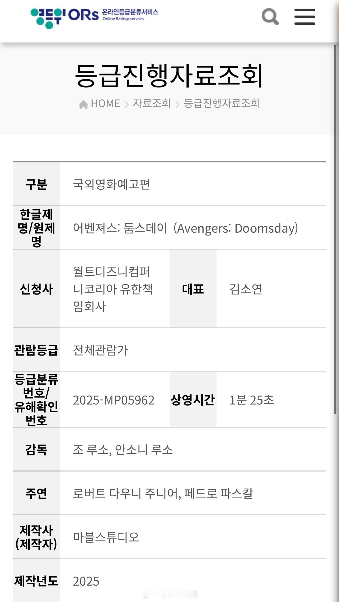 《复仇者联盟:毁灭日》首个预告片时长1分25秒。漫威官方未公布发布日期,有传闻为