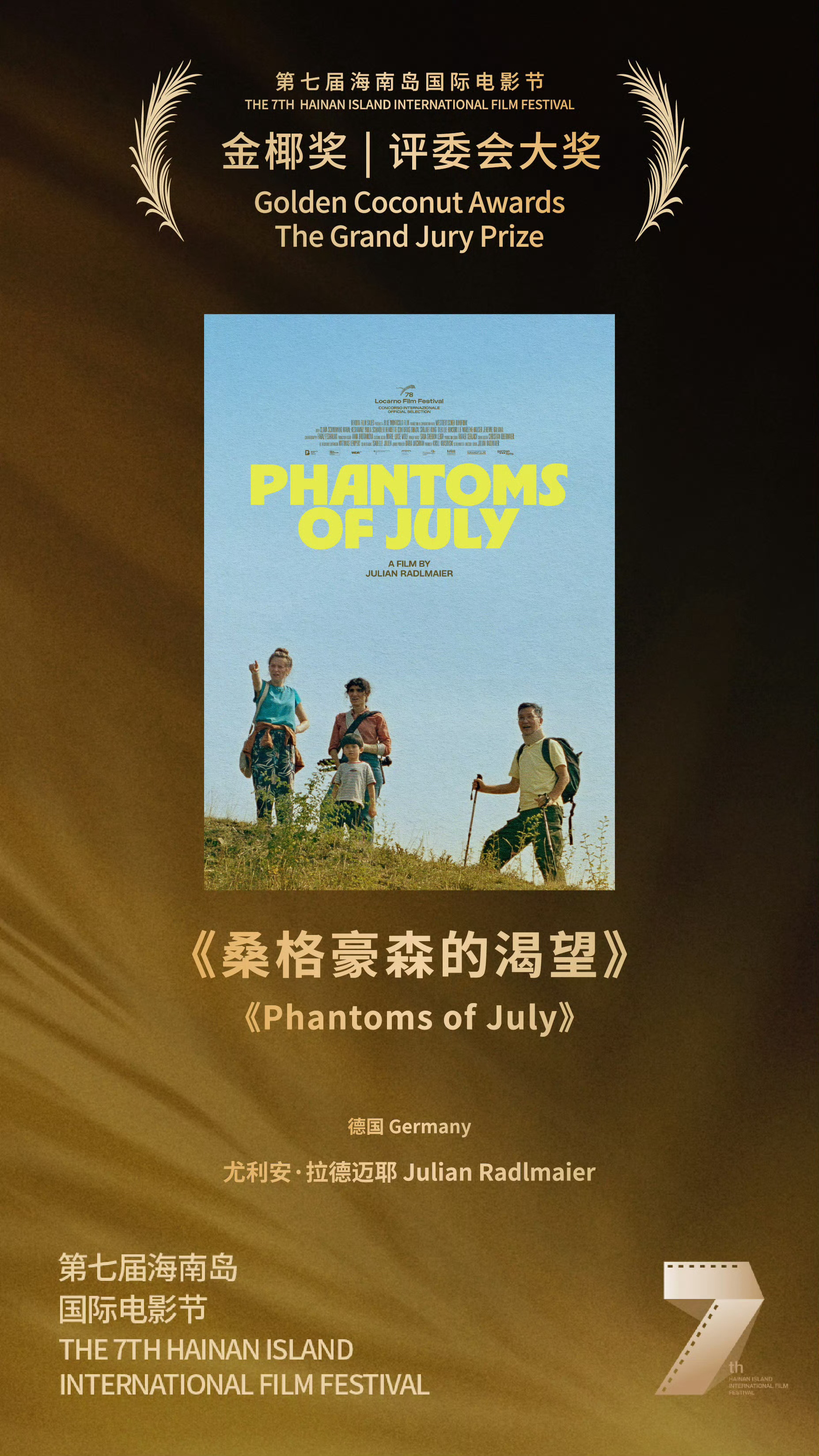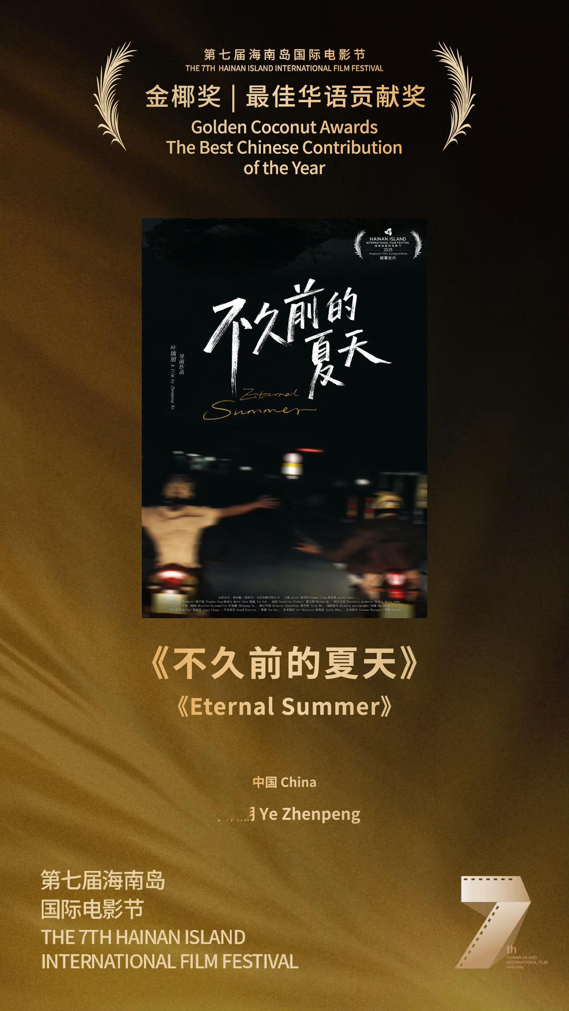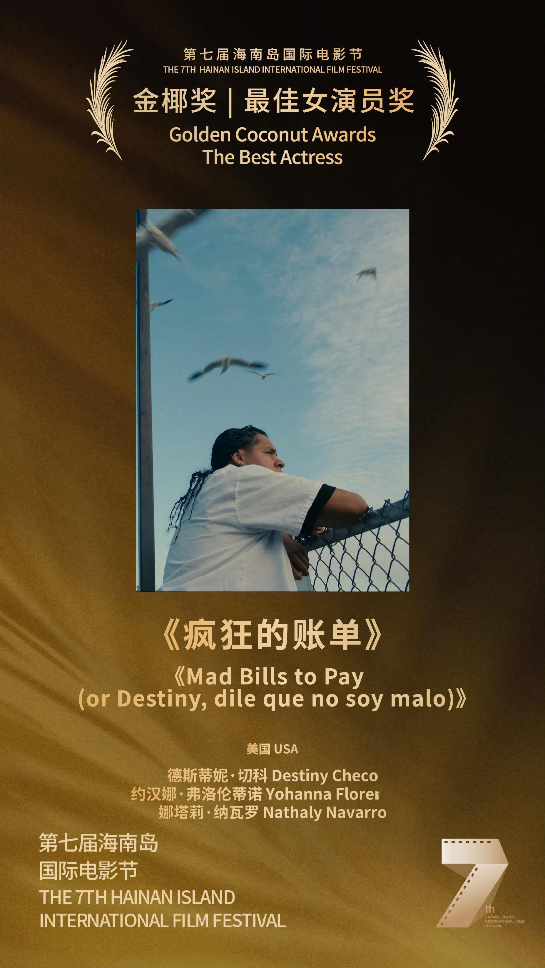 第七届海南岛国际电影节完整获奖名单:“金椰奖”最佳影片|《黑兔白兔》🇹🇯🇦🇪“金椰奖”评委会大奖|《我是全世界最幸福的宝贝》🇨🇳“金椰奖”评委会大奖|《桑格豪森的渴望》🇩🇪“金椰奖”最佳导演奖|乔尔•阿方索•巴尔加斯(《疯狂的账单》)🇺🇸“金椰奖”最佳编剧奖|索菲•隆瓦里凭借(《蓝鹭》)🇨🇦“金椰奖”最佳编剧奖|米格尔•德•祖维里亚(《携风暴而来》)🇦🇷“金椰奖”最佳男演员|西奥多·佩尔兰(《尼诺》)🇫🇷“金椰奖”最佳女演员|德斯蒂妮•切科、约汉娜•弗洛伦蒂诺、娜塔莉•纳瓦罗(《疯狂的账单》)🇺🇸“金椰奖”最佳华语贡献奖|《不久前的夏天》🇨🇳“金椰奖”最佳视效奖|《梦巢》🇬🇧🇫🇷🇨🇦“金椰奖”纪录片评委会特别提及|《甭管生活在哪》🇨🇳“金椰奖”最佳纪录片奖|《发纸水谣》🇧🇪🇫🇷🇻🇳“金椰奖”短片评委会特别提及|《阿姨》🇨🇳🇺🇸“金椰奖”最佳短片奖|《矿脉》🇫🇷🇲🇦🇮🇹🇶🇦 三亚·三亚凤凰岛