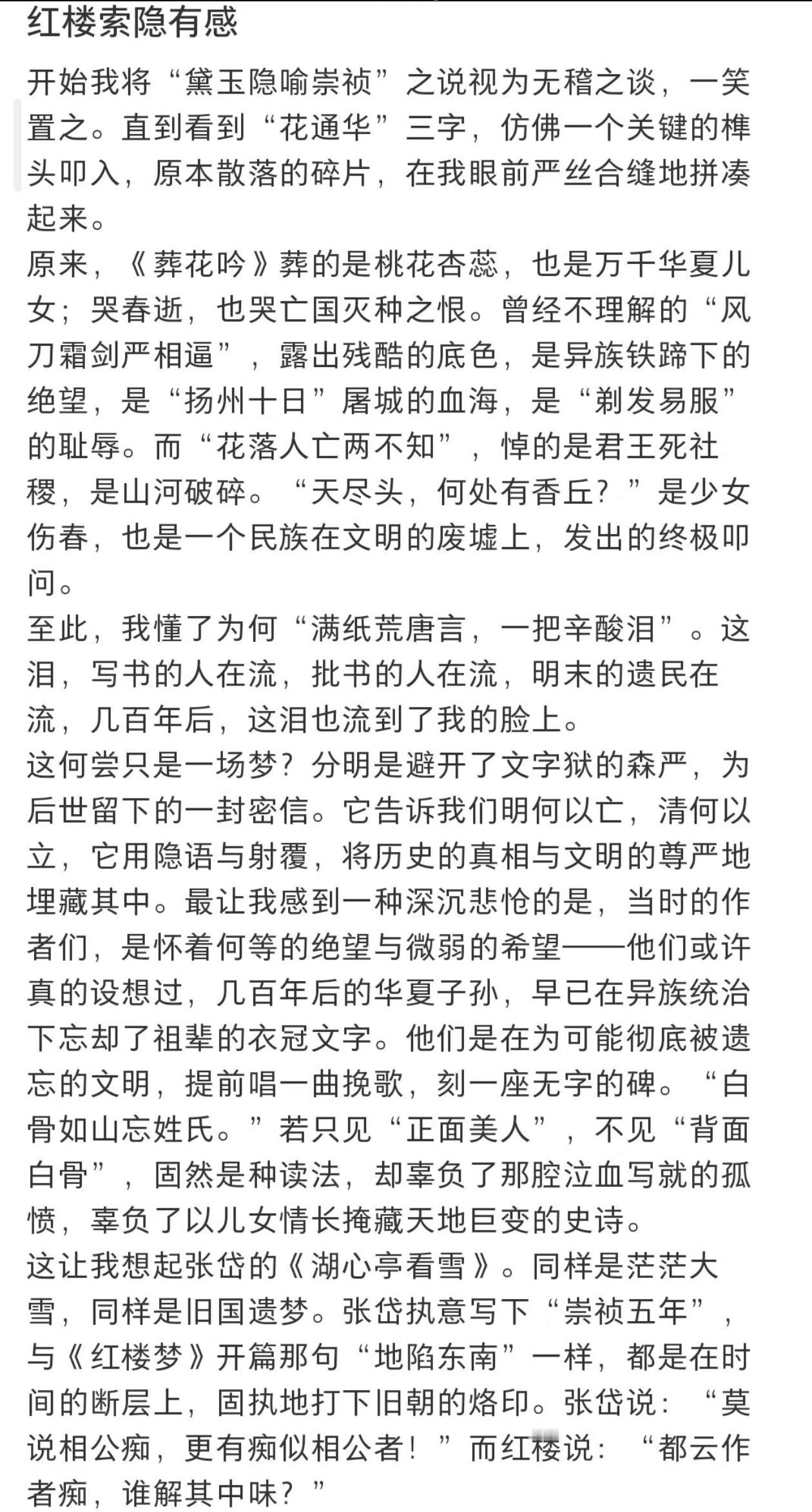 《红楼梦》所谓的“悼明”,在我看来完全站不住脚,很多地方刻意牵强附会。清末明初的