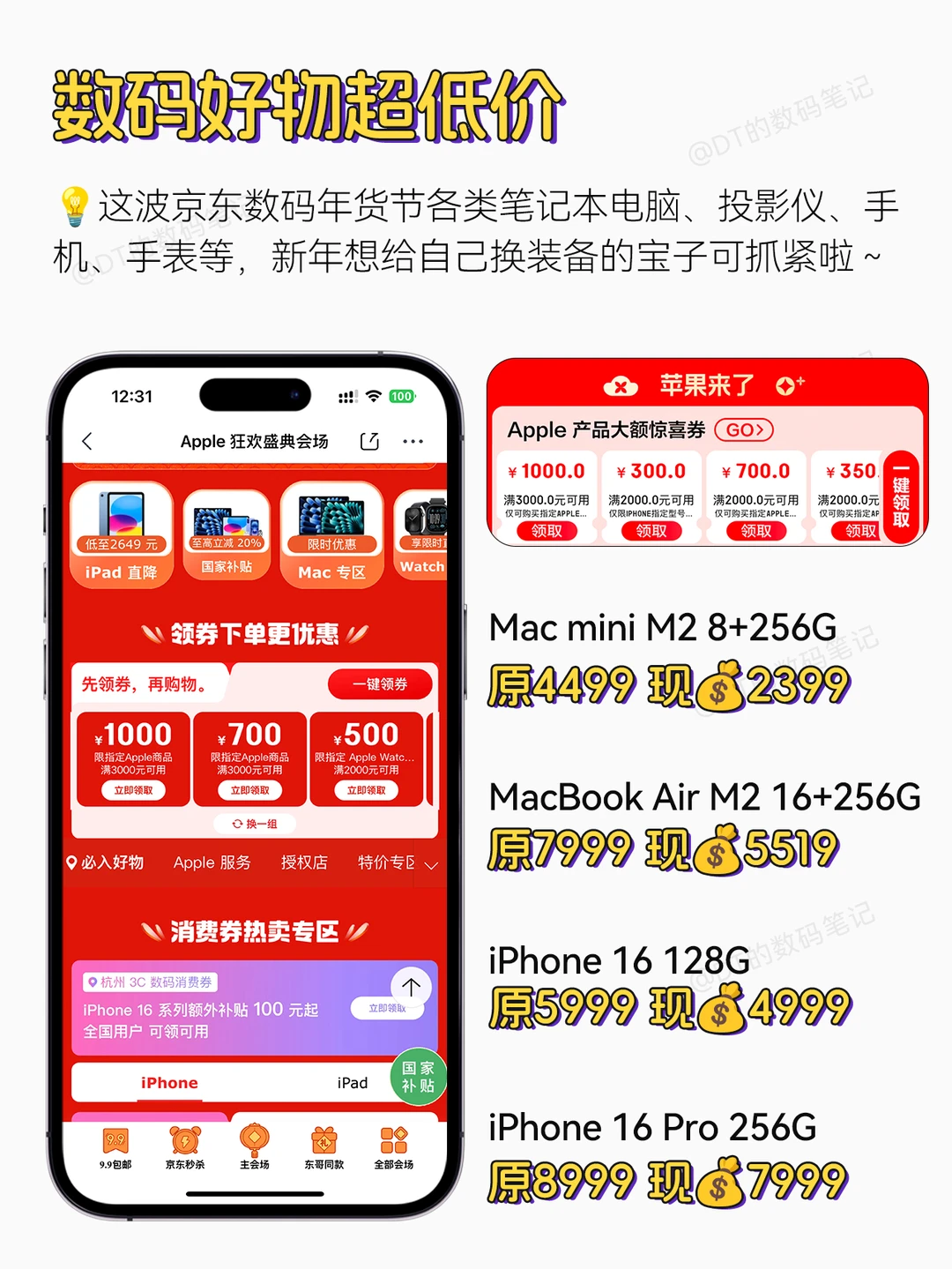 京东3C数码年货节 京东3C数码5折券 京东好物 苹果电脑 数码3C