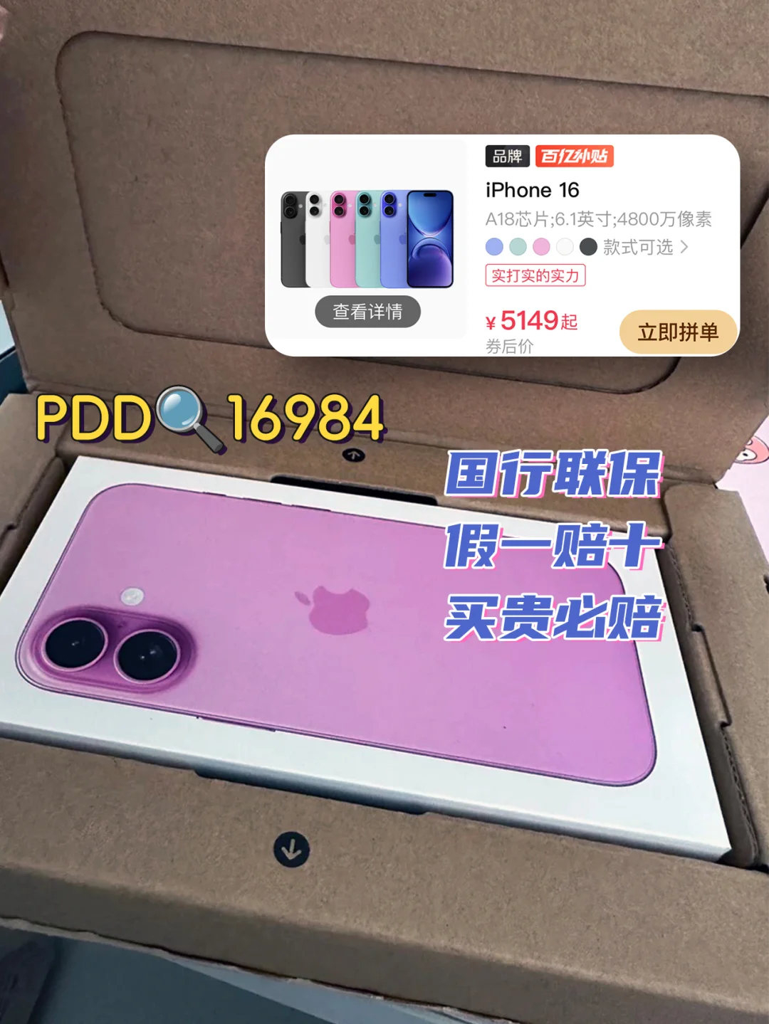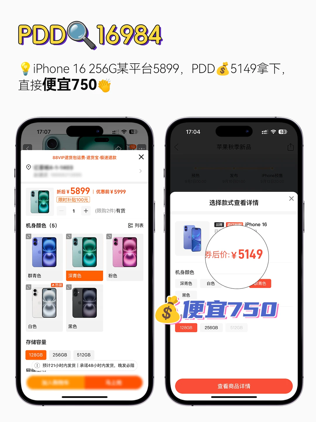 ⚠️iPhone 16 128G某平台5899,PDD💰5149拿下,直接便宜750👏