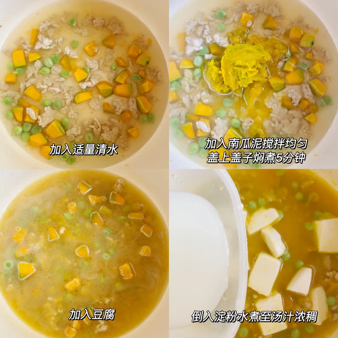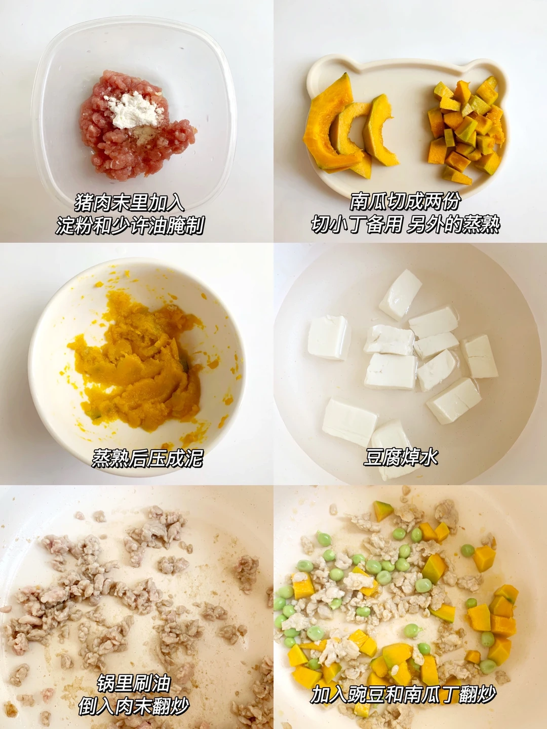 今天分享的南瓜肉沫豆腐煲超下饭 汤汁浓郁,补铁补钙,做法简单 营养又美味,拌饭绝了,拯救饭渣宝宝 答应我,一定要试试[偷笑R][偷笑R] — 🌟食材大小根据宝宝咀嚼能力处理 🌟一岁以上宝宝可以加点调味料