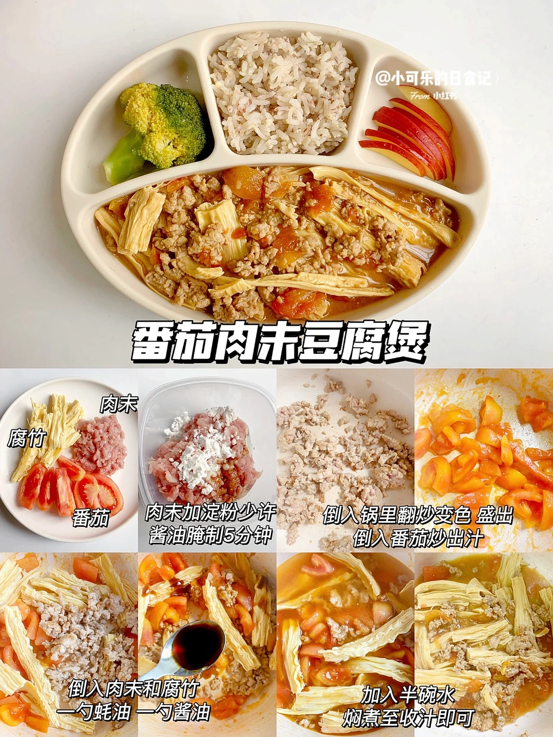 做法:1⃣️肉末加淀粉和少许酱油腌制5分钟2⃣️肉末倒入锅里翻炒变色 盛出,倒入番茄炒出汁,倒入肉末和腐竹,加入一勺肉末和一勺酱油3⃣️加入半碗水焖煮至收汁即可