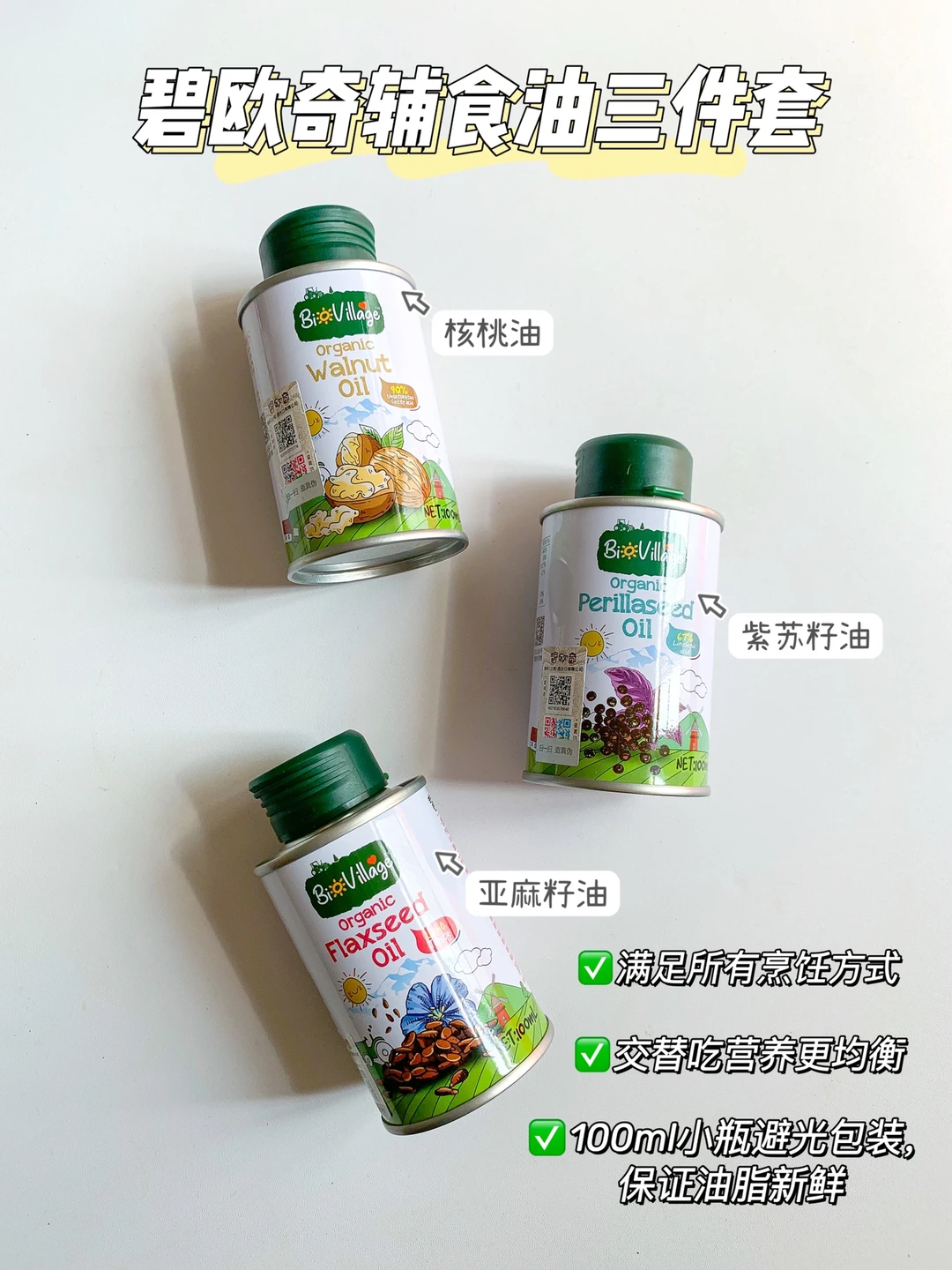 🔸 平时我给我家可乐吃的都是碧欧奇的辅食油,辅食油建议两三种油换着吃,营养更均衡,这个三件套都市小瓶装100ml,短期内也可以吃完,不用担心浪费。