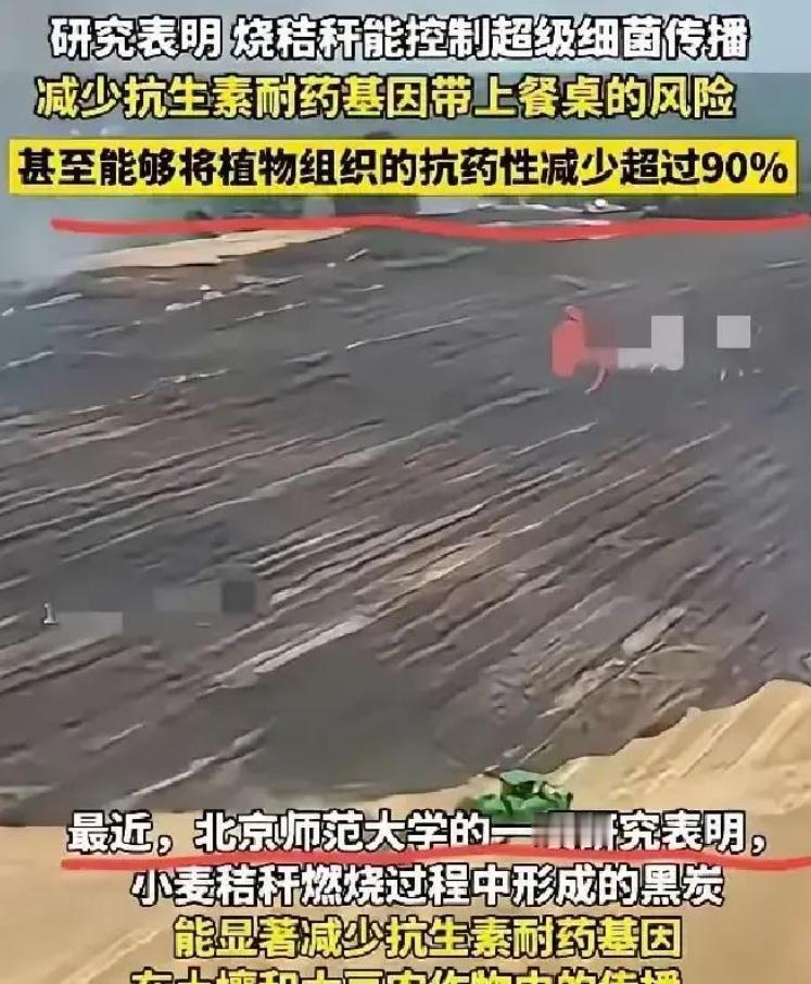 谁能想到?过去因“制造雾霾”被各地严令禁止、农民烧了就要挨罚的秸秆焚烧,如今竟爆出逆天功效——北师大最新研究显示,其产生的黑碳能将农作物中的抗生素耐药基因削减90%以上,直接掐断超级细菌通过食物链入侵人体的路径!早些年全国多地为了改善大气环境质量,普遍推行全域禁烧的政策,当时的大背景是大气污染防治考核压力不小。 要说那几年的秸秆禁烧,简直是“全民皆兵”式的管控。 高速铁路沿线两公里内划成“零容忍”禁烧区,无人机带着热成像仪天天盘旋。 地面网格员揣着执法记录仪24小时巡逻,连村里的大喇叭都循环播报“烧秸秆罚两千,补贴全扣完”。 当时大气污染考核是“一票否决”的硬指标,哪个辖区冒黑烟,负责人就得被问责,秸秆自然成了“背锅侠”。 农民们也头疼,秸秆堆在田里占地方,翻耕还田费力气,拉回家没地方放,偷偷烧一把风险又大。 那时候没人替秸秆说句好话,连农民自己都觉得这是“累赘”。 可谁能料到,北京师范大学的研究直接给它来了个“惊天大平反”。 研究里说的黑炭,可不是露天焚烧冒出来的黑烟,而是通过“受控热解”技术制成的——在专用设备里控制温度,把秸秆转化成炭,全程几乎没污染。 这种黑炭就像土壤里的“基因清洁工”,浑身是细密的孔隙,能把农作物里的抗生素耐药基因牢牢吸住再分解,一下子就削减九成以上。 别小看这九成的削减量,现在医院里“超级细菌”越来越让人头疼,普通抗生素根本治不了,这些细菌的“耐药密码”就藏在蔬菜水果里,跟着我们的筷子进肚子。 秸秆黑炭正好在食物链源头设了一道防线,把这些“密码”提前销毁。 更惊喜的是,中国林科院发现,秸秆黑炭还能修复重金属污染的土壤,往铅、铜超标的地里一撒,有害物质活性就降了大半,土壤肥力还能提升。 吉林的科研团队在盐碱地试过,把秸秆黑炭埋进pH值极高的荒地里,居然种出了玉米,收成比没埋的地块翻了几番。 秸秆的遭遇简直像部反转剧,前几年还是人人喊打的“雾霾制造者”,如今靠科技成了守护健康的宝贝。 当年“一刀切”禁烧是没办法,技术跟不上,不烧就治不了污染;现在集中热解技术成熟了,既能处理秸秆,又能产黑炭,还不污染空气,一举三得。 以前环保部门追着禁烧,现在主动帮着联系回收企业,从“堵”到“疏”,矛盾全化解了。 这背后是发展思路的转变:很多“废物”只是放错地方的资源,秸秆就是最好的例子。 说不定再过几年,我们吃的每口粮菜,都得感谢这些曾被嫌弃的秸秆。 这就是科学的魅力,总能在看似无解的难题里,挖出意想不到的惊喜。