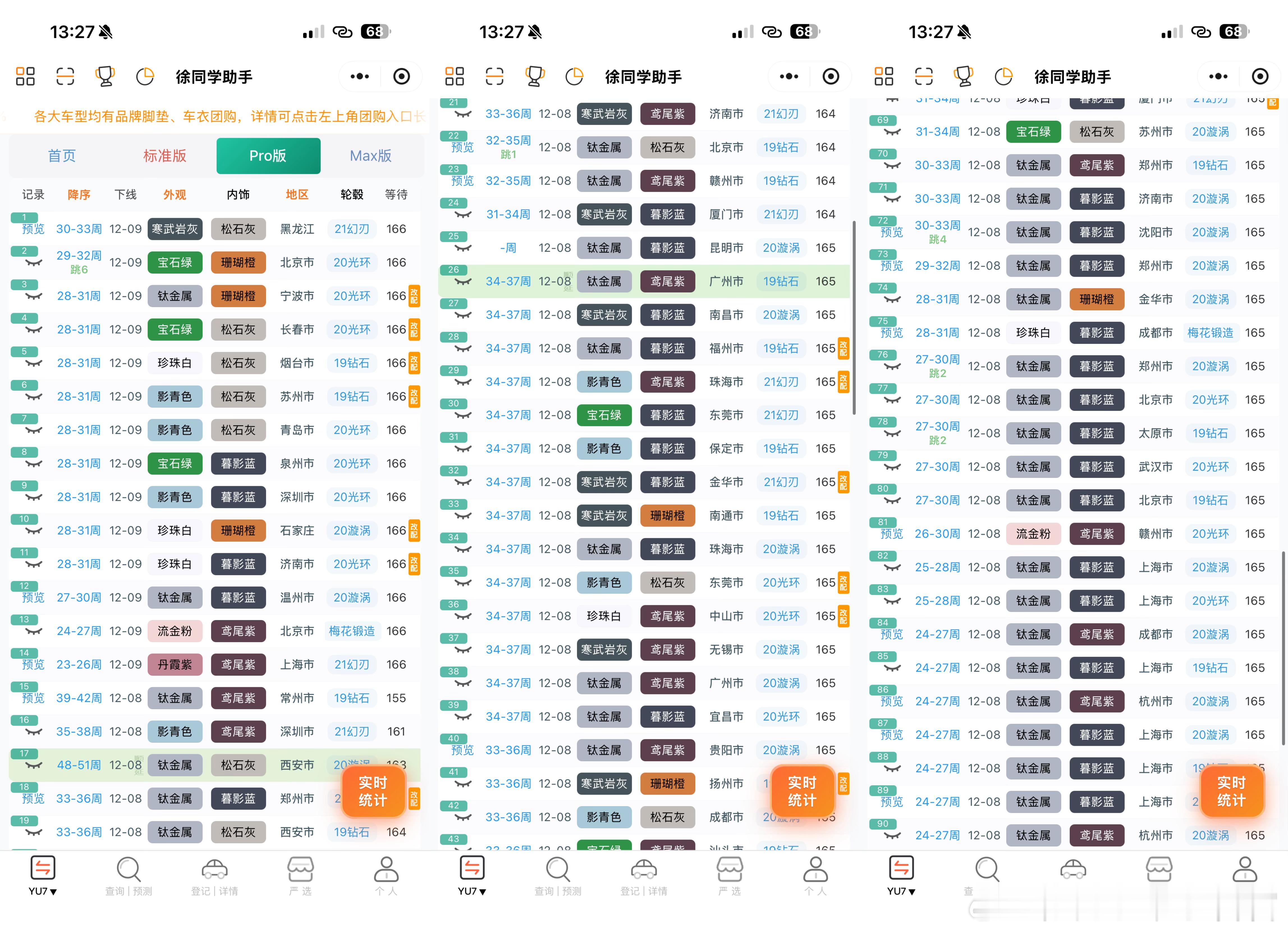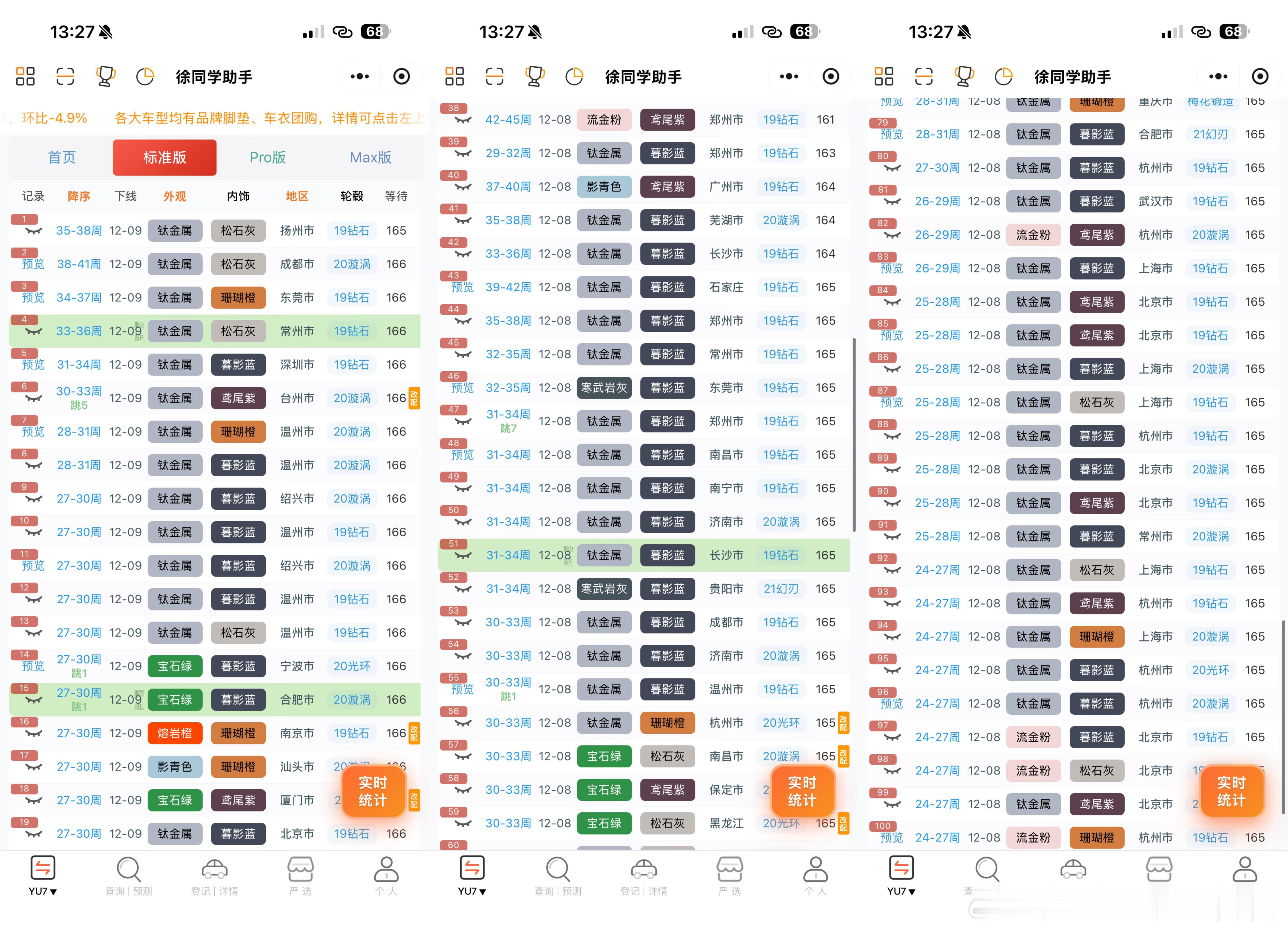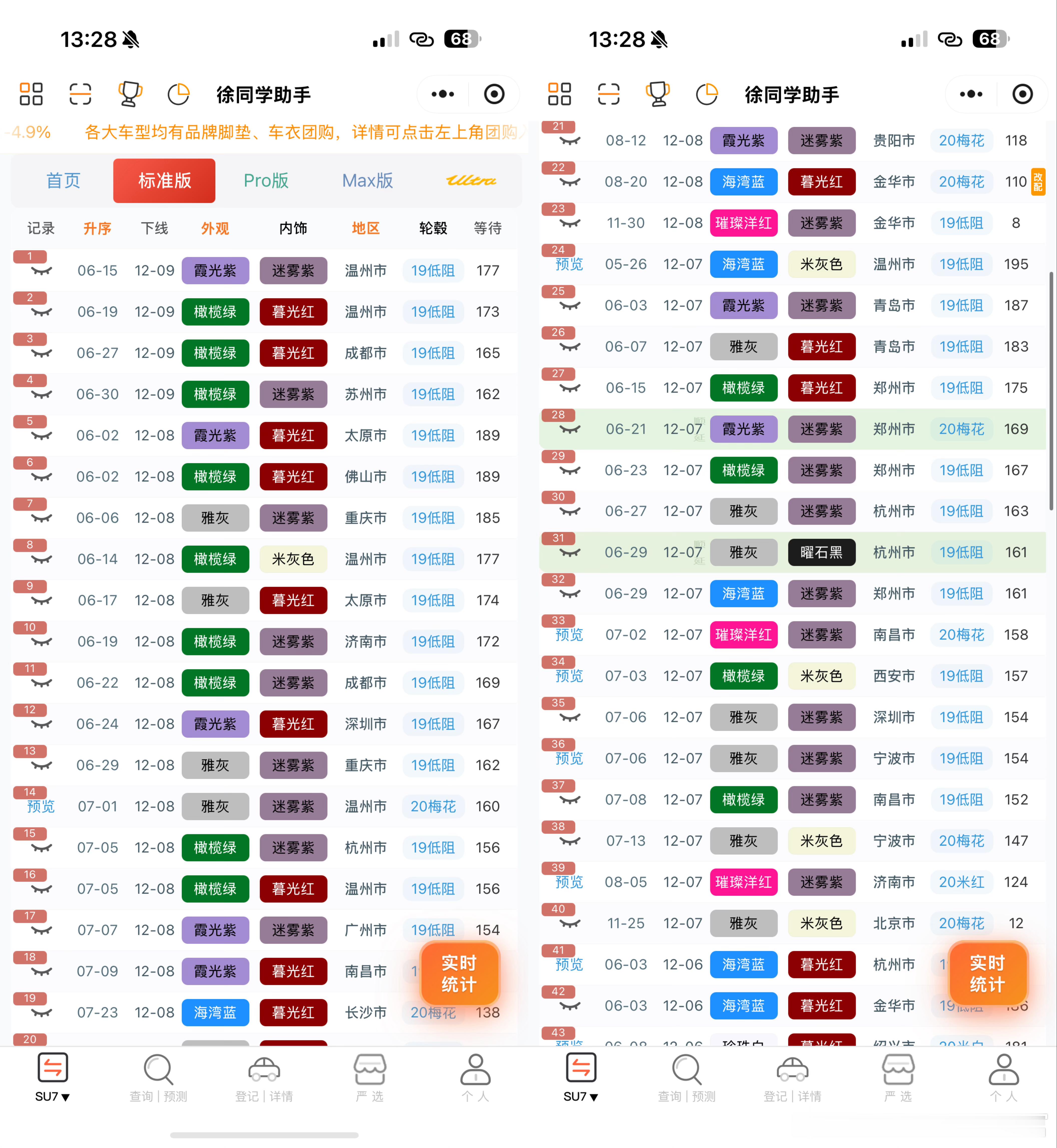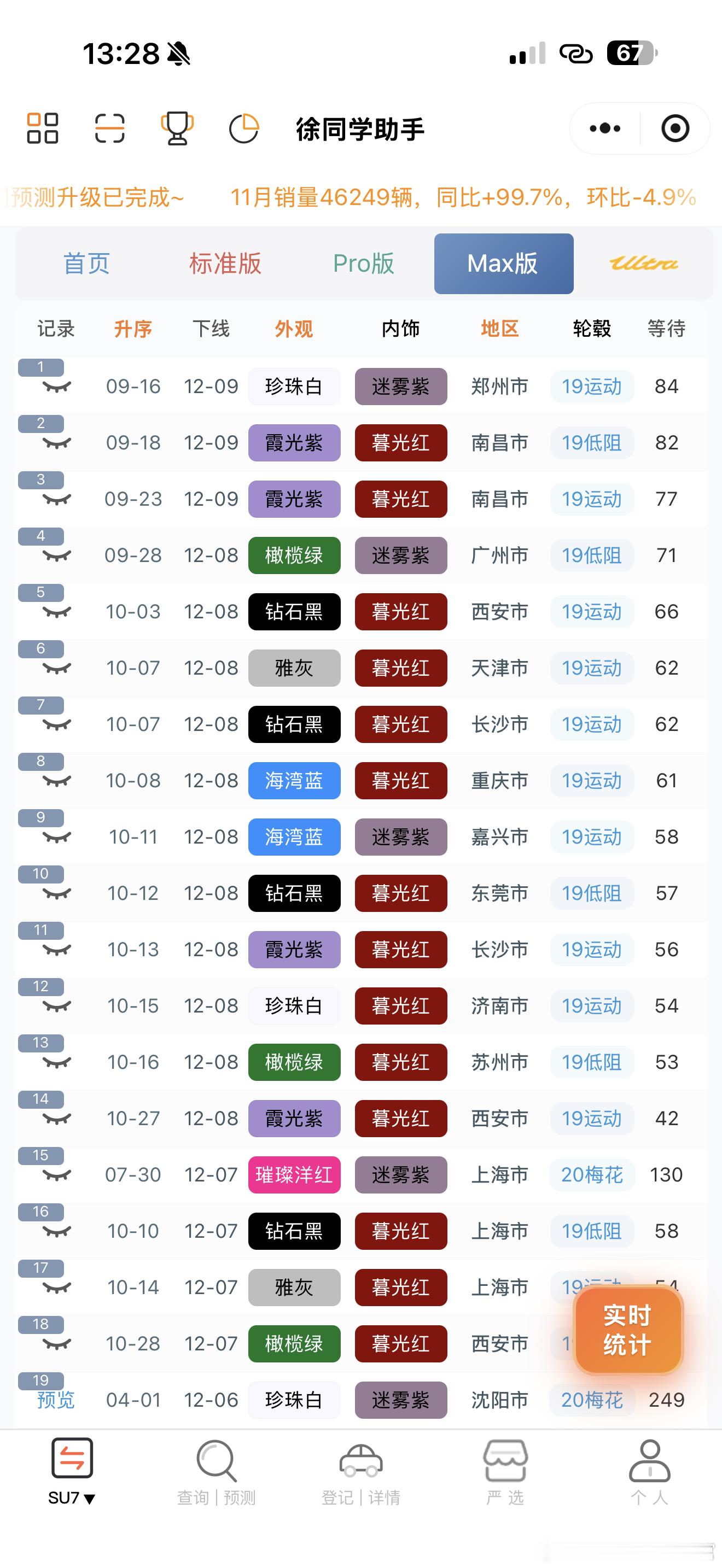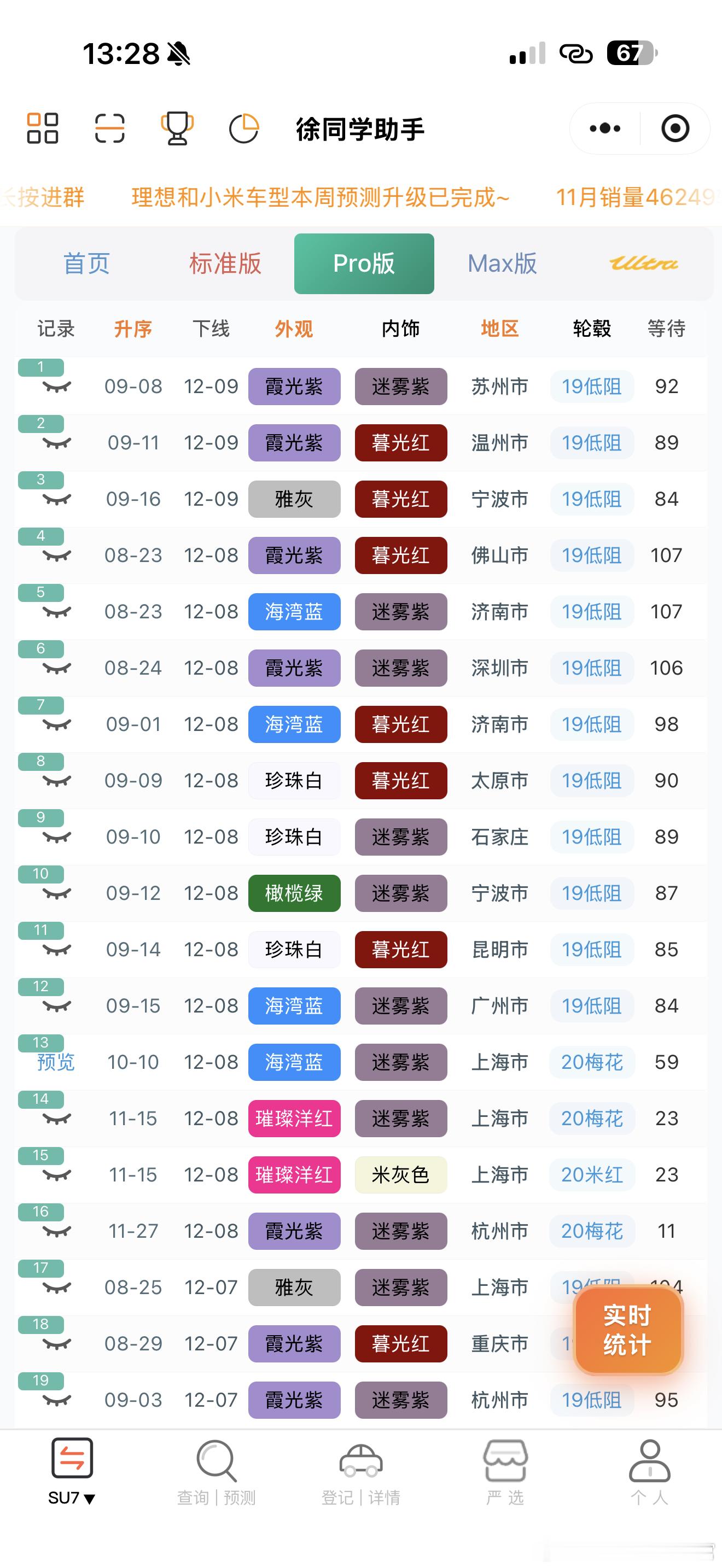 小米今天正式发通稿了,小米的三款新车即将发布,待我去看看实车总结如下:YU9-家庭用车(没有续航焦虑的主力车)YU7 GT-高性能SUV(赛道上的猛兽)SU7 L-行政豪华轿车(加量不加很多价)---------------------分割线----------------------‼️还没下线的可以多刷一刷改配界面(切记不要多余操作)‼️昨天的下线量算是近一个月最多的,小米为了购置税拼了,多交一台,就可以少损失1.5达不溜‼️徐同学助手登记下线有惊喜咯(实物!实物!),下线了记得登记~🌀YU7(据不完全统计)合计266台1️⃣标准:下线148台,26-27周还有很多没下,同时30周以后的也在正常下线,快的很快,慢的很慢2️⃣Pro:下线76台,28周的随时下线了,整体周期到了31周左右3️⃣Max:下线42台,整体下线7月中旬左右的,更有11月的也在下线了,这样下去购置税都不用兜了🌀SU7(据不完全统计)合计43台1️⃣标准:下线19台,7月份的为多,还有不少订单,就这个产能这个月怎么交完2️⃣Pro:下线13台,车不多了,11月的在随时下线3️⃣Max:下线11台,车不多了4️⃣ultra:我也要去贴个紫水晶改色膜了更多关于小米汽车的最新资讯和深度解析,请参考【米车派】~徐同学助手小米汽车