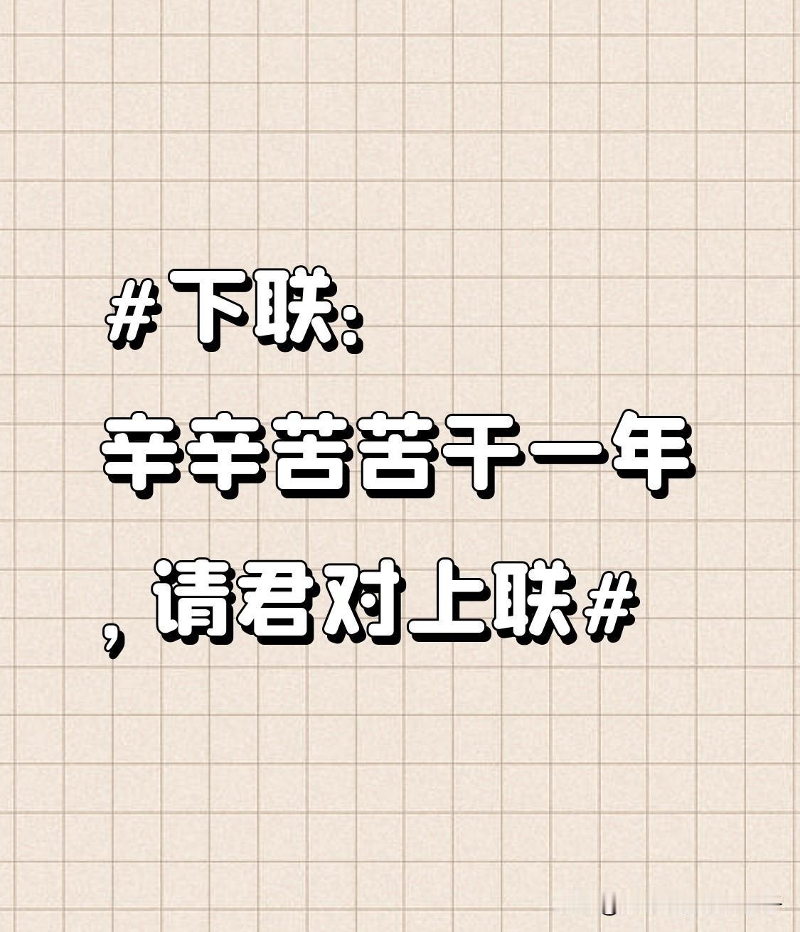 看到“辛辛苦苦干一年”这个下联,我也来凑个上联热闹。我对“忙忙碌碌拼四季”。 你想啊,“忙忙碌碌”对应“辛辛苦苦”,都是形容一种状态,一个是忙,一个是辛苦,都体现出为生活打拼的不易。“拼四季”和“干一年”也很搭,一年刚好分四季,在这四季里不断拼搏,到年末就是辛苦干了一整年。就像很多打工人,春种夏耘秋收冬藏,四季都在为了生活奔波,这不就是“忙忙碌碌拼四季,辛辛苦苦干一年”嘛。