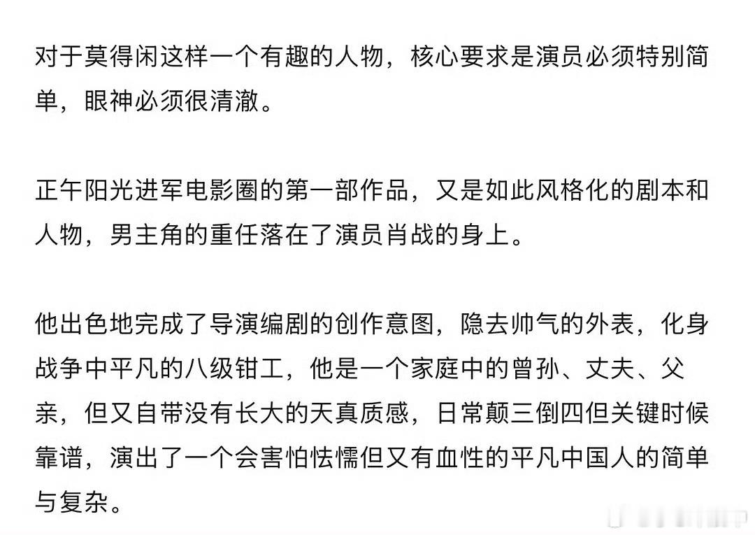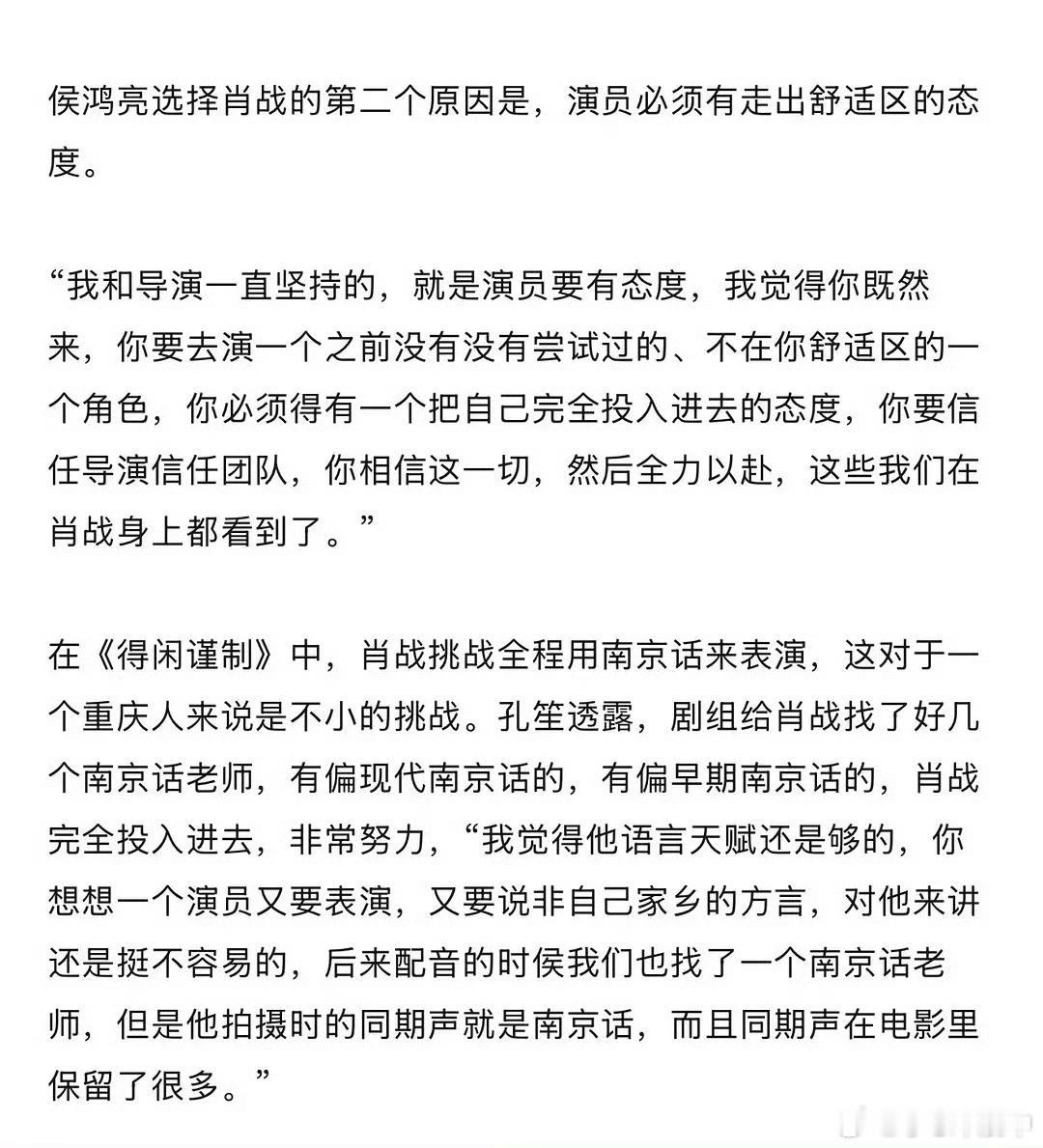 侯鸿亮最初对肖战的印象从《如梦之梦》的话剧舞台到《得闲谨制》的银幕,侯鸿亮因这部8小时大台词量话剧里,非科班的他以专注忘我的专业态度完成高强度演出。其塑造的五号病人自带“天真的茫然”,与角色深度契合,展现了超越技巧的情感穿透力!打动了侯鸿亮。再有《谍报上不封顶》的再度合作……无背景的肖战,成功不是偶然!是必然的!他的成功和付出是成正比的!是通过自身不断输出优秀作品一步一步积累的!~~说明了“顶级资源终将流向极致付出者”王源肖战从小是邻居电影得闲谨制