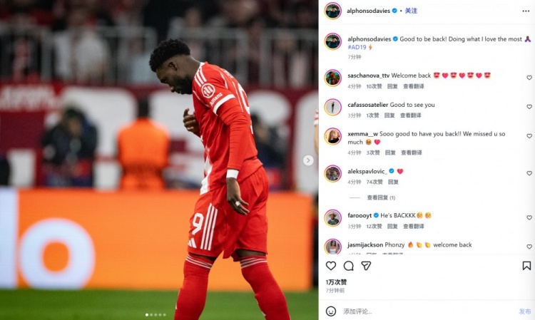 直播吧12月10日讯拜仁在本轮欧冠3-1逆转葡体,阿方索·戴维斯最后时刻伤愈替补登场。