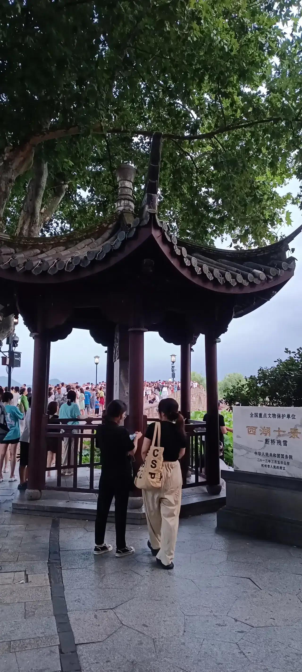 断桥是杭州西湖白堤上最著名的景点之一,无论春夏秋冬还是酷暑严寒断桥上都是人潮涌动,一派热闹景象。 站立在断桥上,恍惚中有白娘子和许仙前来相会动人的场景。抬眼看却是冬日的风拂过断桥,漫天飞舞的银杏树叶,恍若仙境落入人间。 康熙皇帝的题字“断桥残雪”使得杭州西湖断桥有了知名度,成为西湖断桥雪景的经典代表。
