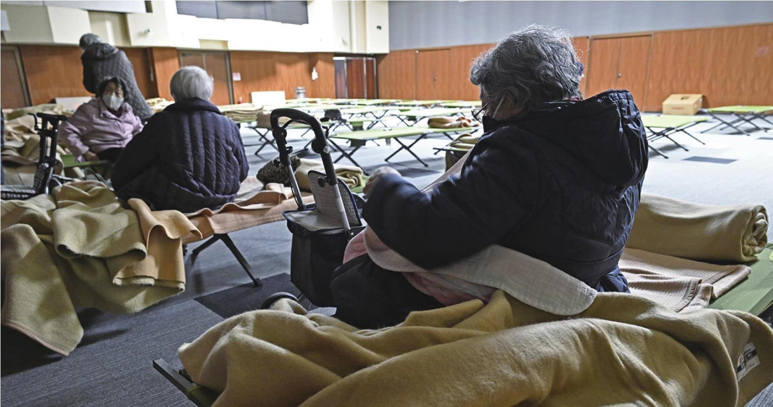 12月9日,在日本北部日高镇,人们在海啸预警解除后准备离开紧急避难所。