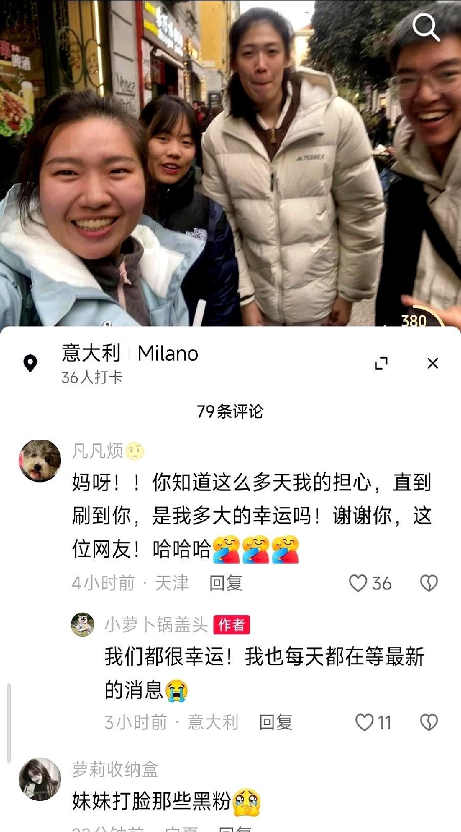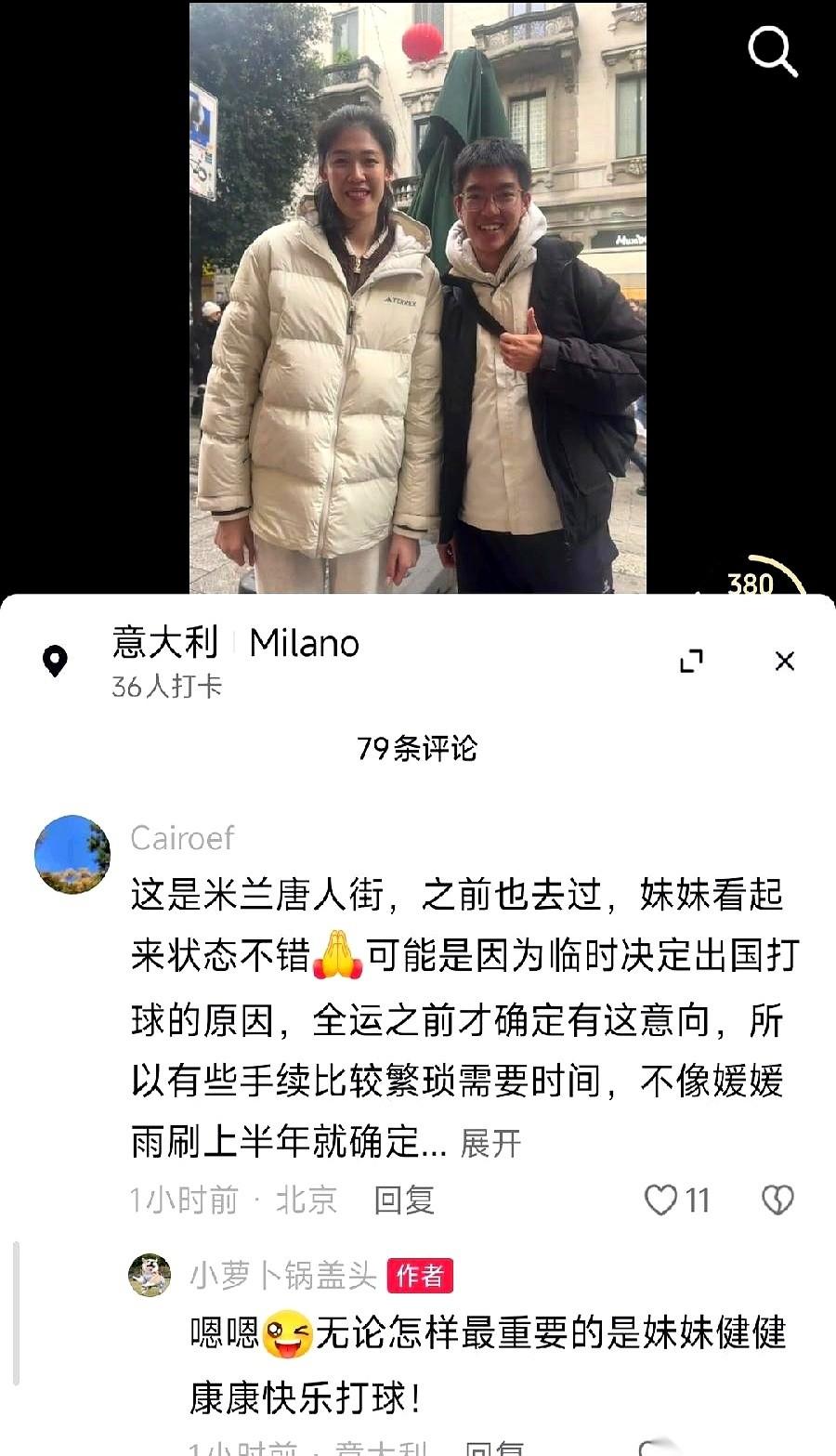凌晨刷到一张照片,直接给我看愣了。 李盈莹,在米兰的唐人街。 就那么笑意盈盈地,跟几个球迷站在一起,像邻家妹妹。 前两天她不是没上场吗?欧冠那么大的比赛。国内网上猜什么的都有,说啥的都有,看得人心惶惶的。 结果呢? 人家压根不是啥大事儿。 就是手续办得慢了点。你想想,全呈会那会儿才敲定的事儿,跨国转会,一堆文件要跑,哪有那么快。办过签证的都懂。 但说真的,看到“唐人街”这三个字,我心里突然就咯噔一下。 就是那种感觉,一个二十出头的姑娘,一个人在异国他乡,训练比赛压力那么大,最先想去的地方,还是那个能吃到一口热乎中餐、听到几句熟悉乡音的地方。 这才是活生生的人啊。 不是什么上了场就只知道扣球的机器。 她也会想家,也需要喘口气,也得找个地方安放自己那颗漂泊的心。 踏实了。 现在心里就剩一句话:姑娘,好好打,别怕。 米兰的球网,等着你一次次把它砸响呢。