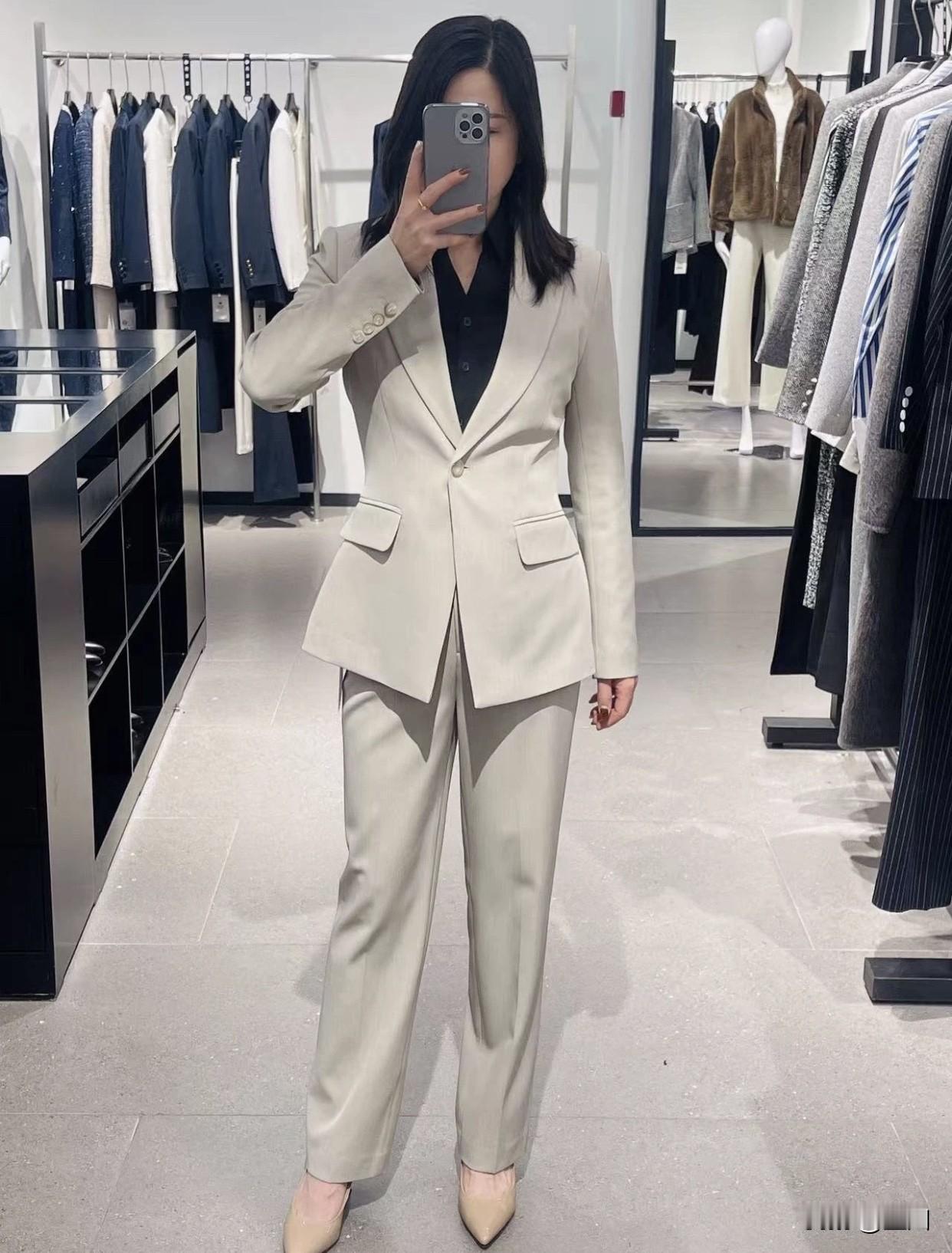 职场穿搭怎样更显女人味?纯白色职业套装搭裸色通勤高跟鞋