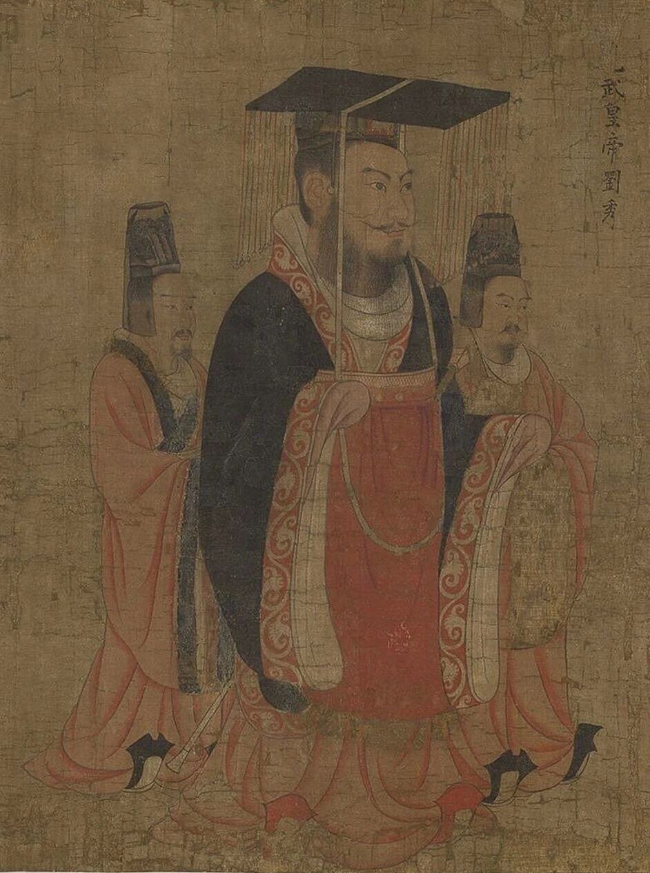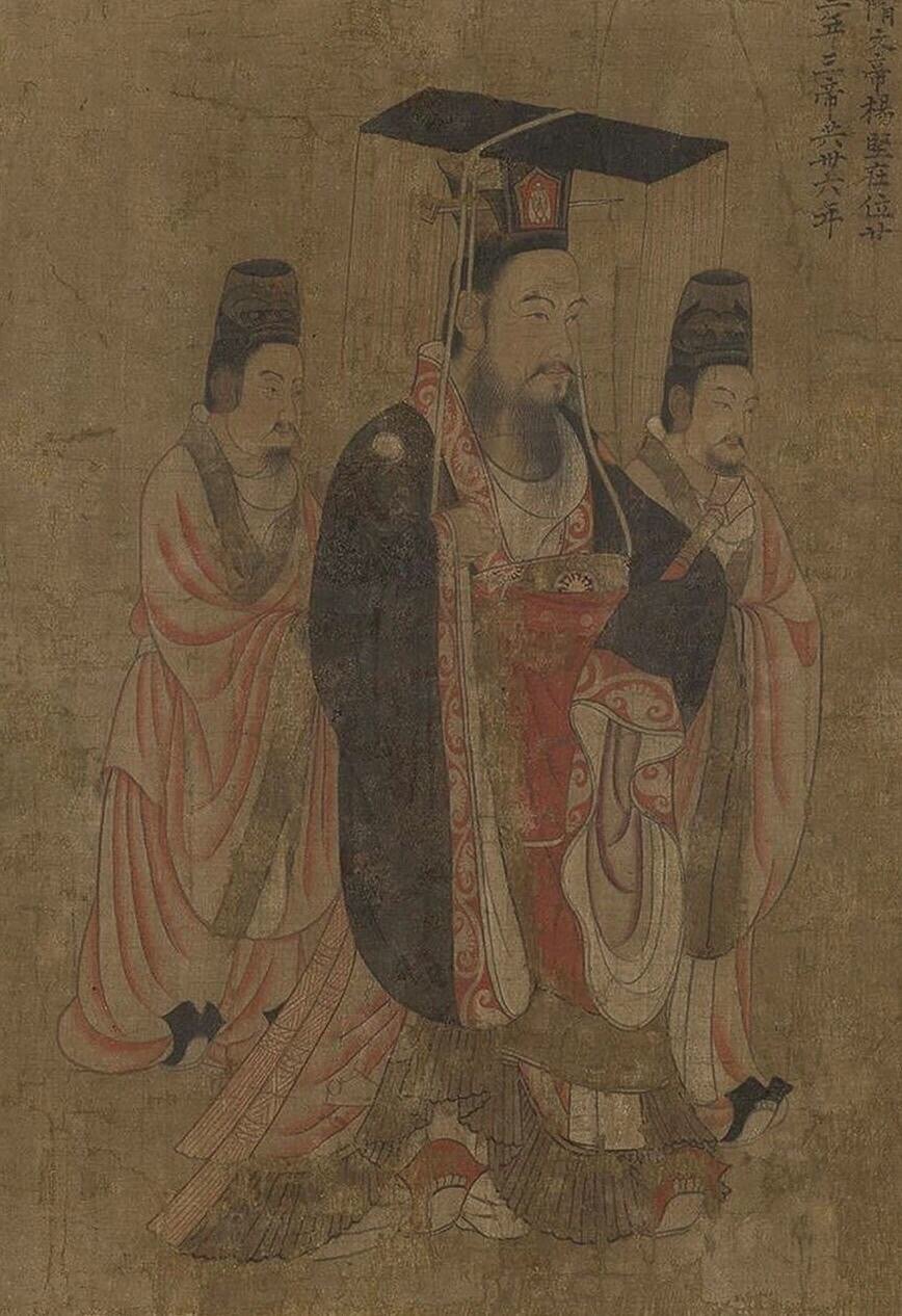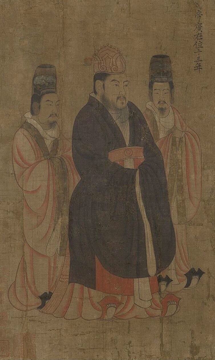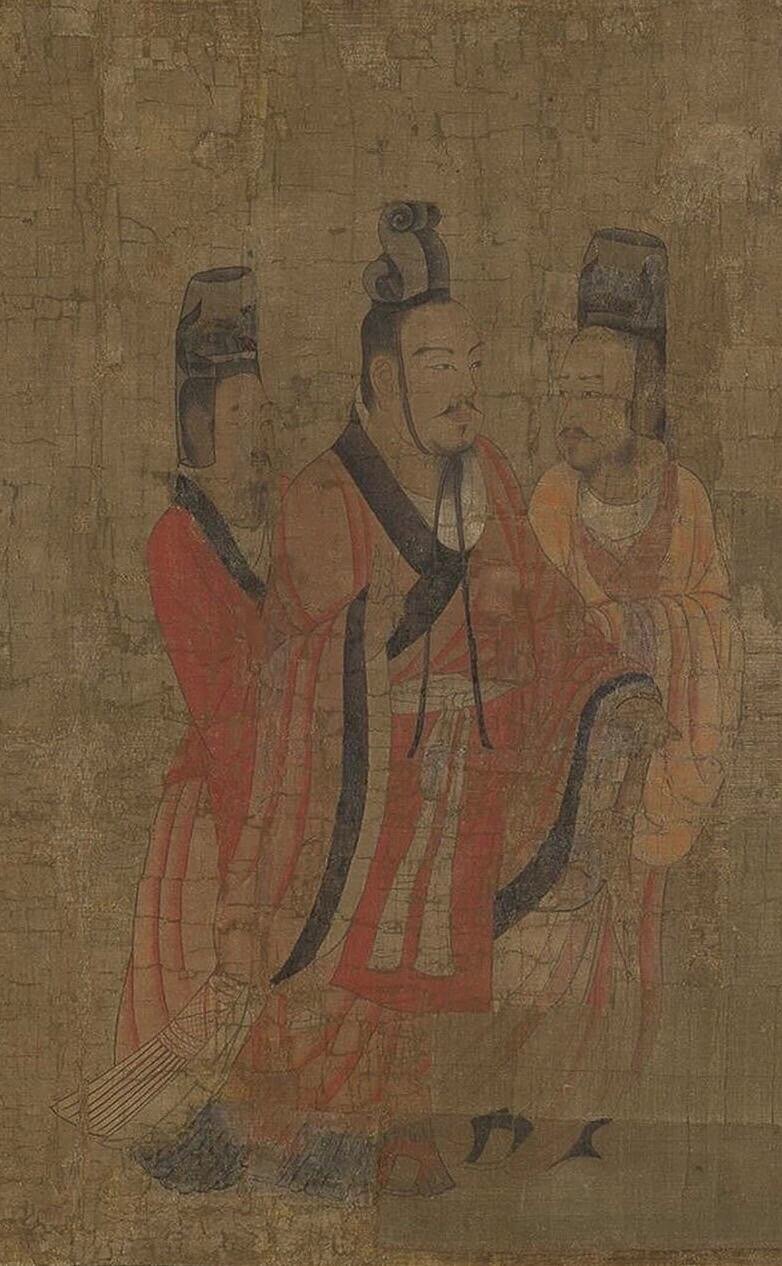 这13位帝王长啥样? | 唐·阎立本《古帝王图卷》宋摹本传为唐代阎立本画作,现存摹本。据《画史》记载,米芾于王秋家所遇之画卷(即今日之真品)为杨褒之摹本。此卷现藏于美国波士顿美术馆。图中绘自汉至隋 13 位帝王形象,分别是西汉昭文帝、东汉光武帝、魏文帝曹丕、吴王孙权、蜀主刘备、西晋武帝司马炎、南朝陈宣帝陈顼、陈文帝陈蒨、陈废帝陈伯宗、陈后主陈叔宝、北周武帝宇文邕、隋文帝杨坚、隋炀帝杨广,加上侍人共四十六人。每位帝王图前均楷书榜题文字,且均有随侍,人数不等,形成全画卷相对独立的十三组人物。