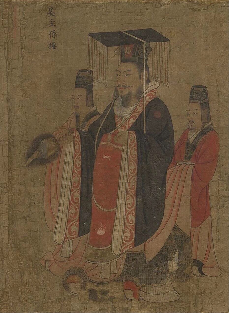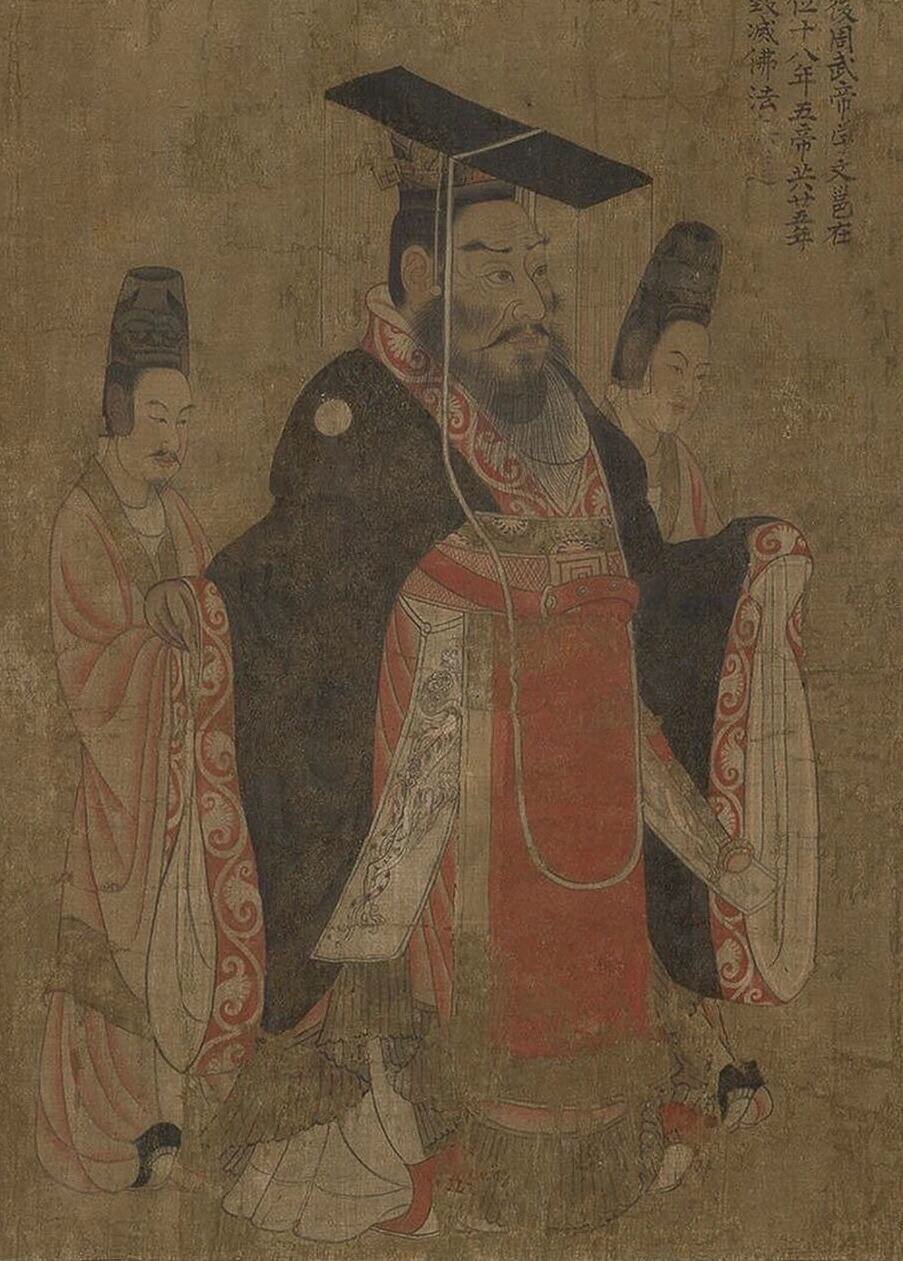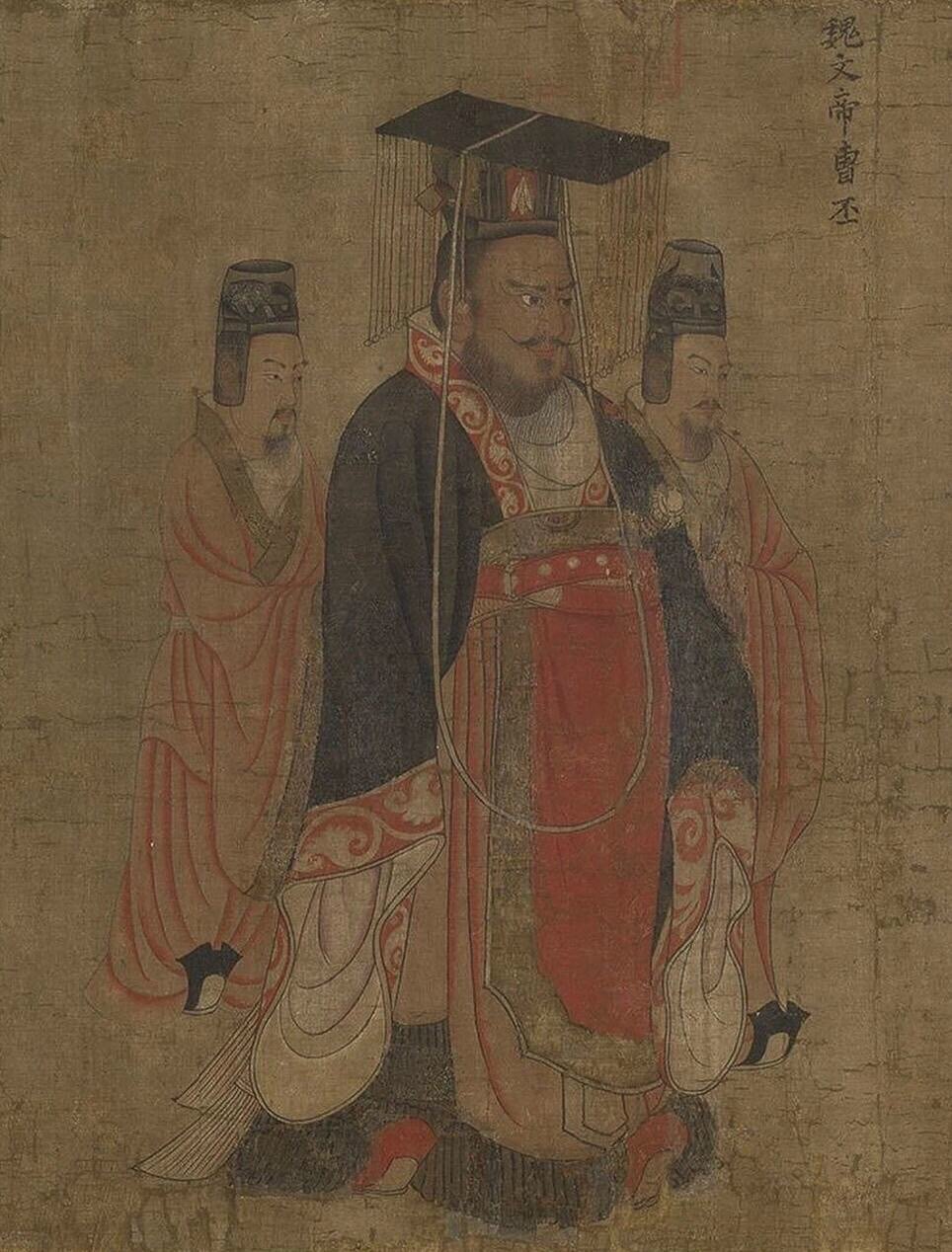 这13位帝王长啥样? | 唐·阎立本《古帝王图卷》宋摹本传为唐代阎立本画作,现存摹本。据《画史》记载,米芾于王秋家所遇之画卷(即今日之真品)为杨褒之摹本。此卷现藏于美国波士顿美术馆。图中绘自汉至隋 13 位帝王形象,分别是西汉昭文帝、东汉光武帝、魏文帝曹丕、吴王孙权、蜀主刘备、西晋武帝司马炎、南朝陈宣帝陈顼、陈文帝陈蒨、陈废帝陈伯宗、陈后主陈叔宝、北周武帝宇文邕、隋文帝杨坚、隋炀帝杨广,加上侍人共四十六人。每位帝王图前均楷书榜题文字,且均有随侍,人数不等,形成全画卷相对独立的十三组人物。
