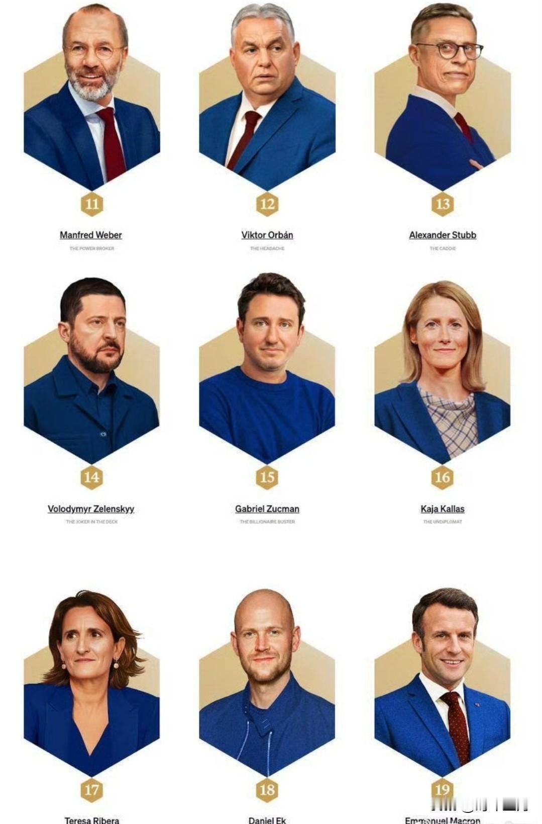 美国《政客》搞了个“欧洲最有权势的人”排名,给特朗普排第一,默尔茨排第三,普京给了第五,冯德莱恩排第七,吕特排第八,斯塔默排第十,欧尔班排第十二,泽连斯基排第十四,卡拉斯排第十六。 不过我感觉这个作者似乎在故意针对马克龙,给勒庞排了第四,马克龙却放在第十九。