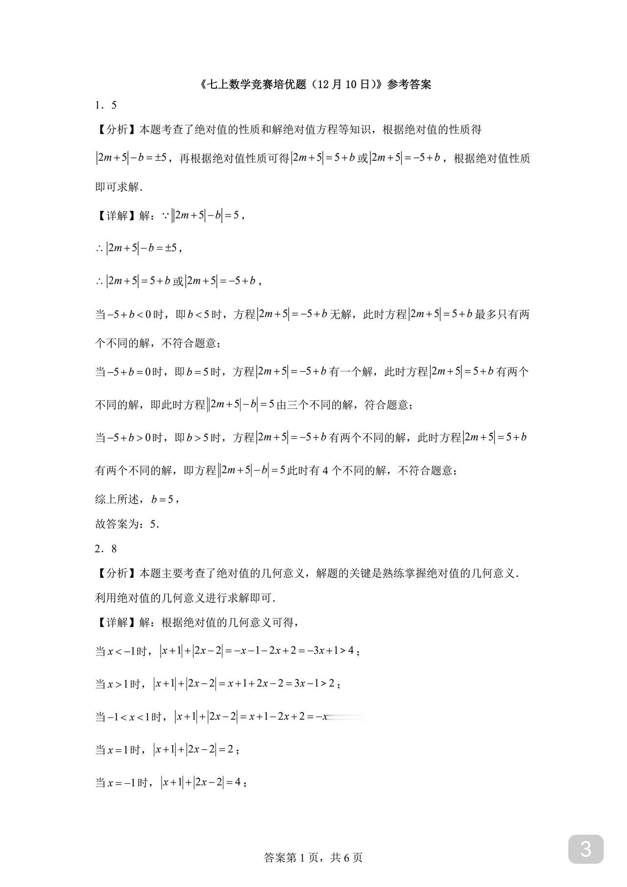 七上数竞培优 学生未练 头条先发 这五道题过关者 上册数学拔尖 可提前学下册或