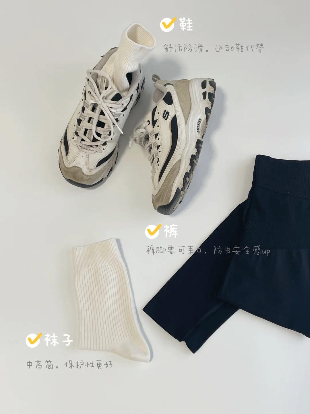 👖:要裤脚可束口,否则担心小虫子什么的。用瑜伽裤代替了,不走太野的路,完全可以