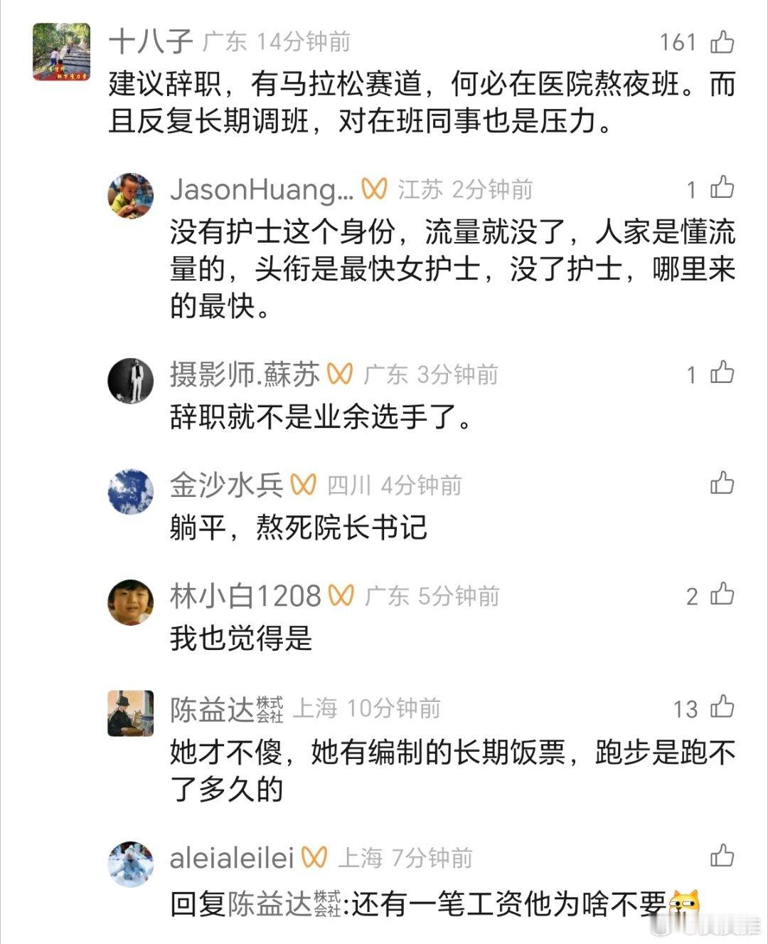 为什么“最快女护士”张水华不从医院辞职,专职跑马拉松?网友评论:没有护士这个身份,流量就没了,人家是懂流量的,头衔是“最快女护士”,没了护士,哪里来的最快?科技先锋官
