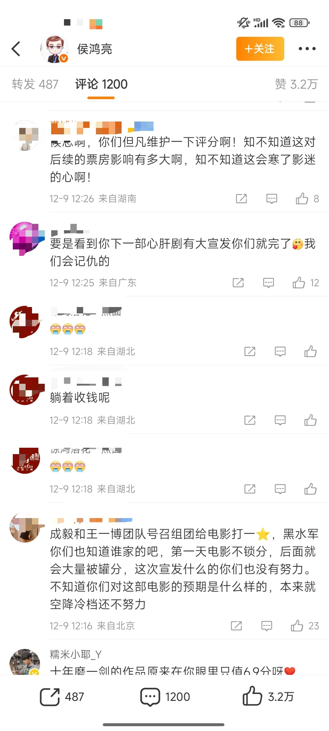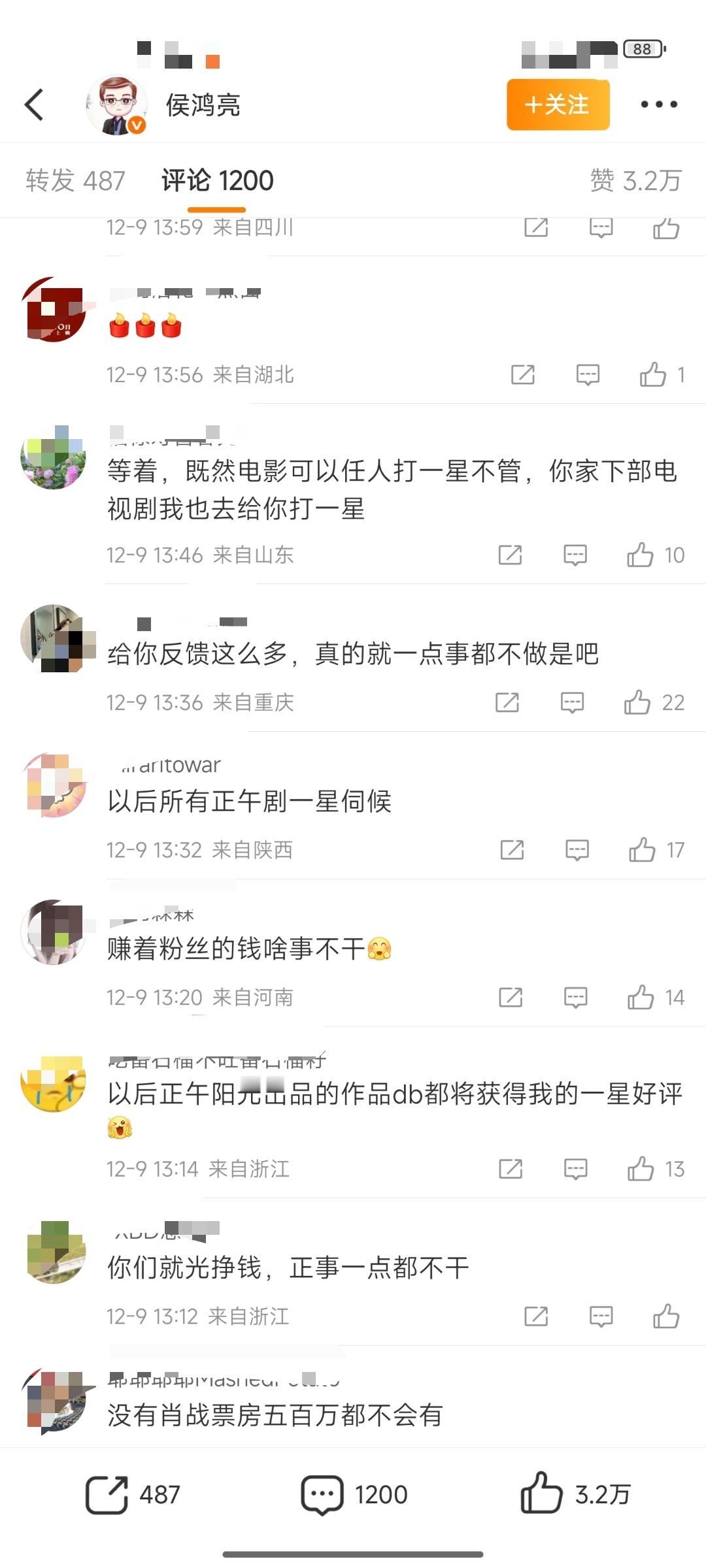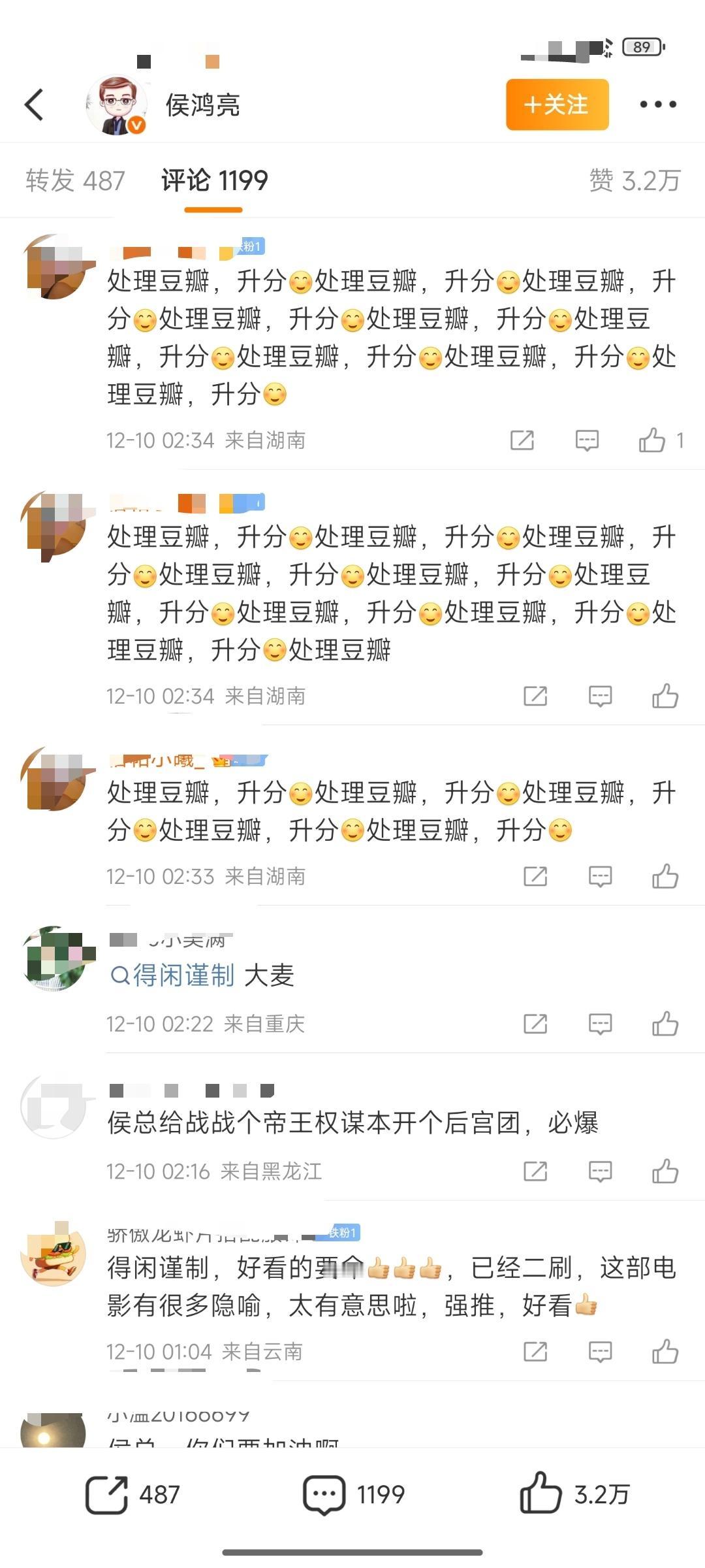 成毅危?《得闲谨制》豆瓣评分6.9,侯鸿亮微博评论区被🦐冲了,要求他找豆瓣,还有警告⚠️成毅。找豆瓣好说,成毅在拍戏,他没惹任何人,别警告他行不行?会影响他拍戏心情的 其实一星二星打的人挺少,这个评分比例还是正常的