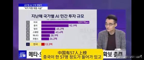 看来很多所谓发达国家已经放弃了与中美竞争的意愿,韩国人说,全球前100位人工智能顶尖人才,中国有57人上榜,美国占20席,他们说中美在人工智能领域断崖式领先,韩国即便跑到了第三名也没有意义。 别真以为韩国是想放弃,他们是追得太吃力了。2025年5月韩国《东亚日报》的调查显示,61.5%的理工科学者收到过海外挖人邀请,其中82.9%来自中美,42%的人已经在考虑跳槽,自家人才都留不住,怎么追? 韩国AI领域的“双重人才流失”更要命,2024年外国从业人员比上年少了12.3%,去美国硅谷的韩国人才也很少回来,就像手里抓沙子,越用力漏得越快,这哪是放弃,是没本钱争。 那份顶尖人才榜单不是凭空排的,2025年斯坦福大学AI指数报告里写得明白,中美在AI核心论文发表量上占了全球68%,专利数量占72%,韩国加其他发达国家的总和都赶不上零头。 你身边有没有这种情况?明明自己挺努力,可别人的基础和资源就是比你强,想追都没头绪,韩国现在就处在这个尴尬位置,不是不想跑,是起跑线差太远。 中国的领先不是靠运气,2024年国内AI企业和高校合作培养的工程师超10万人,光深圳一个城市的AI研发投入就比韩国全国还多,这种堆资源的玩法,其他国家学不来。 美国也有自己的杀手锏,硅谷2025年上半年AI创业公司融资达420亿美元,是韩国全年投入的8倍,有钱就能砸出好项目,顶尖人才自然愿意去,这是良性循环。 有人说韩国是在卖惨,可数据不会骗人。他们最顶尖的AI实验室里,核心算法工程师有三分之一是从中美挖来的,还留不住,刚培养出点经验就被高薪挖走,换谁都头疼。 其他发达国家也没好到哪去,德国2025年搞了个AI产业园,结果发现核心芯片全要从中国买,日本去年的AI研发投入只涨了3%,连中美增速的零头都不到。 这些国家不是真放弃,是算过账后发现不划算。AI研发是烧钱的活,砸几十亿可能连水花都没有,中美能扛住,他们却怕血本无归,只能嘴上说“没意义”。 中国人才里藏着个有意思的点,57位顶尖人才里有32位是本土培养的,剩下的是海外归来的,这说明咱们既能自己造人才,又能吸引外面的人才,底气就这么足。 韩国学者自己都说,不是不想争,是国内没连续性的研发投资,待遇也跟不上,55岁以上的学者连退休后研究的保障都没有,谁还愿意埋头干一辈子? 美国的人才策略更鸡贼,他们给顶尖AI专家开的年薪是韩国的5倍,还送住房和子女教育福利,这种条件摆出来,换谁都会动心,人才流动从来都是往高处走。 你觉得这种领先能一直保持吗?其实也不一定,要是哪天中美停止投入,优势很快就会缩水,不过就目前来看,其他国家想追上来,至少得先解决钱和人才留存的问题。 韩国也不是没试过破局,2024年搞了个“AI人才计划”,想给学者涨工资,结果预算只批了3亿美元,连挖一个顶尖人才都不够,刚喊出口号就没了下文。 中美之间也不是铁板一块,中国在AI应用场景上更强,比如智能支付、自动驾驶的普及率全球第一,美国在基础研究上更牛,两边各有千秋,共同把门槛抬高了。 那些说“竞争没意义”的发达国家,私下里没少搞小动作。德国偷偷和中国AI企业合作,想偷学技术,日本派人去硅谷当“卧底”,打探研发进展,嘴上佛系心里急。 韩国有个工程师的话挺扎心,他说在韩国做AI研发,就像在小池塘里养鱼,再大也长不大,去中美就像进了大海,有无限可能,这话道出了很多人才的心声。 2025年还有个现象挺有意思,不少发达国家的企业开始“抱大腿”,主动和中美AI公司合作,与其自己苦熬,不如跟着喝汤,这比硬撑着竞争聪明多了。 有人担心中美会垄断AI技术,其实不用怕。中国一直对外开放合作,不少发展中国家都在和咱们合作搞AI培训,美国也在和盟友共享部分技术,垄断根本不现实。 韩国的“丧论”更像一面镜子,照出了全球AI竞争的真相:不是靠嘴硬,是靠真金白银的投入和对人才的尊重,这两样跟不上,再怎么喊口号都没用。 咱们也不能掉以轻心,AI技术更新太快,今天领先不代表明天也领先,就像跑步,稍微松口气就可能被追上,持续投入和人才培养才是硬道理。 那些发达国家的处境也给咱们提了醒,任何领域的领先都不是偶然的,得有完善的体系支撑,从人才培养到研发投入,再到成果转化,每个环节都不能掉链子。 中美在AI领域的领先,从来不是为了让别人放弃,而是要带动整个行业往前走。就像跑步,领跑者的意义不是把别人甩在身后,是让整个队伍都跑得更快,这才是真正的价值。 信息来源: 北京晚报——2025年11月03日韩国瞄准AI全球前三