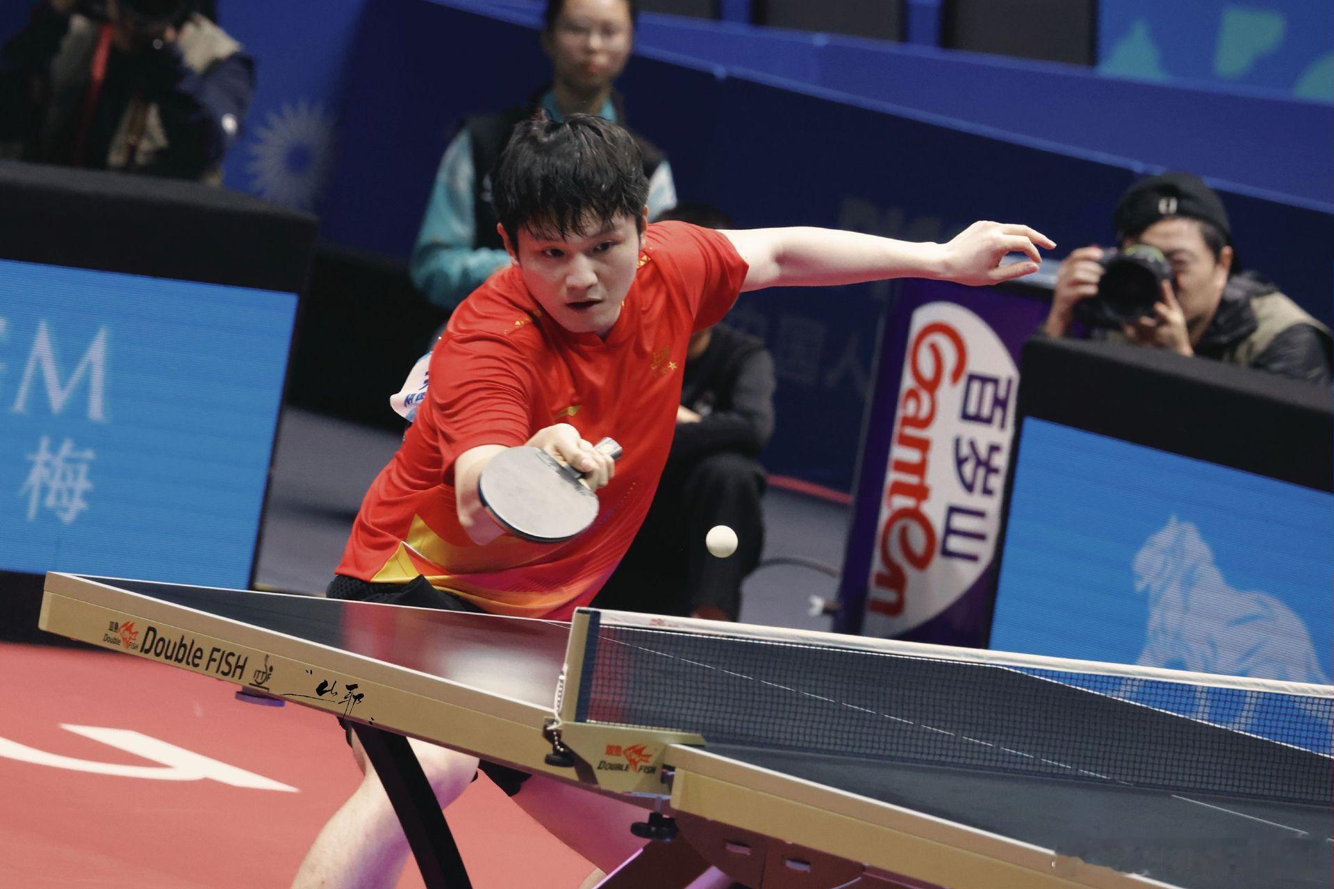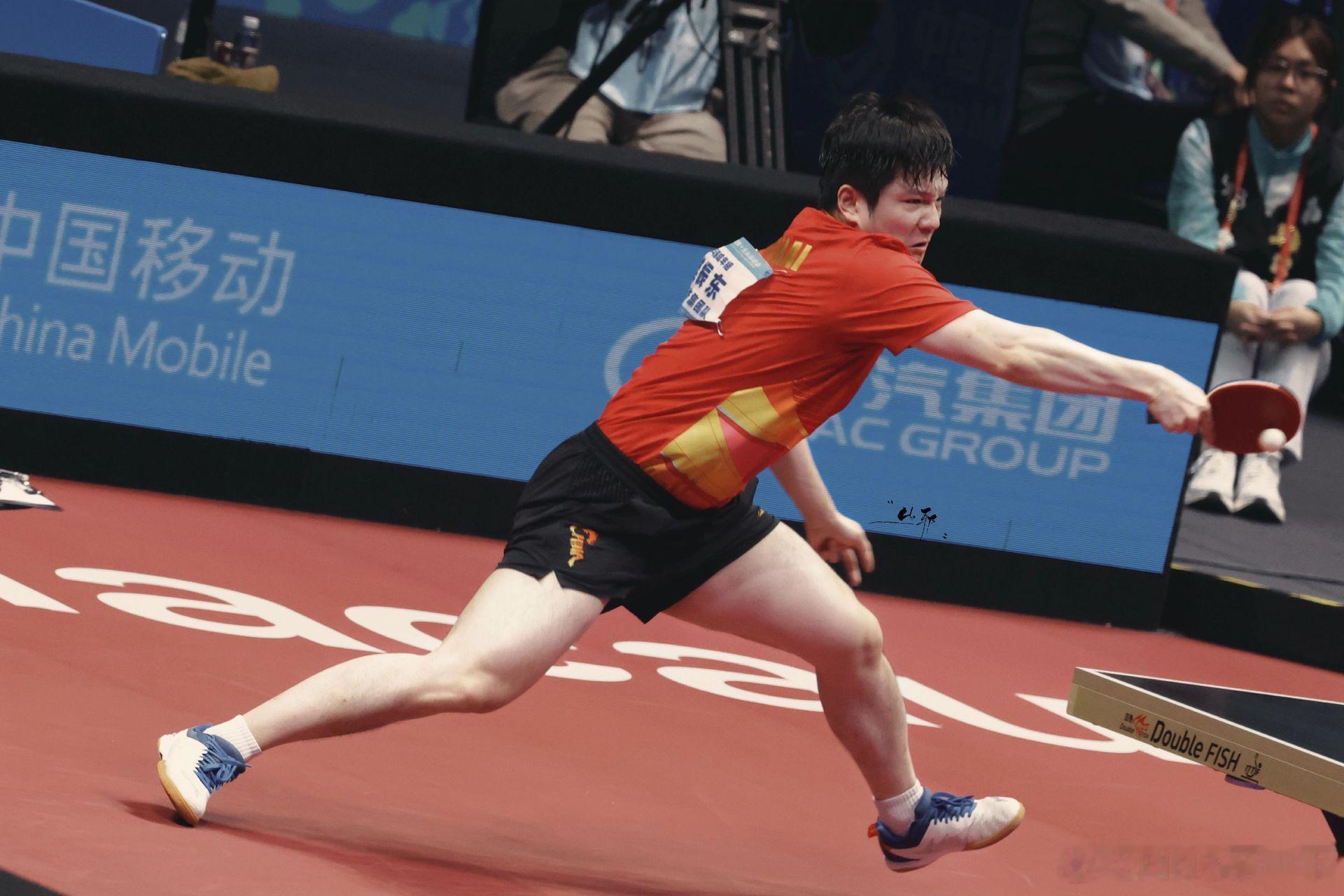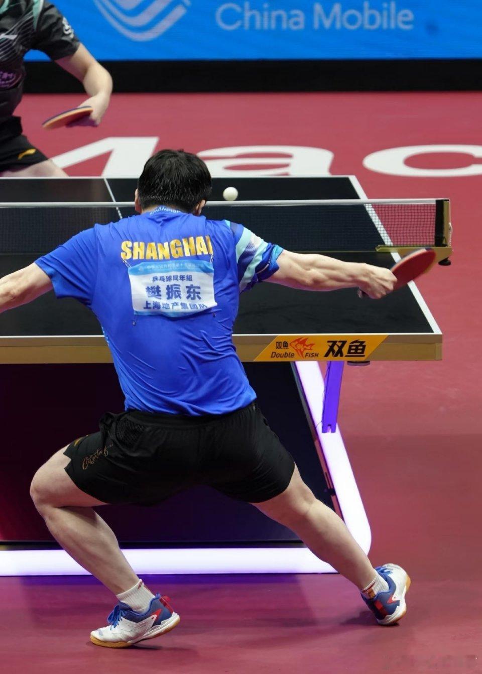 樊振东沉稳中带着坚韧不拔气势,每一次起拍,每一次相持都彰显着撼动对手的绝对实力。