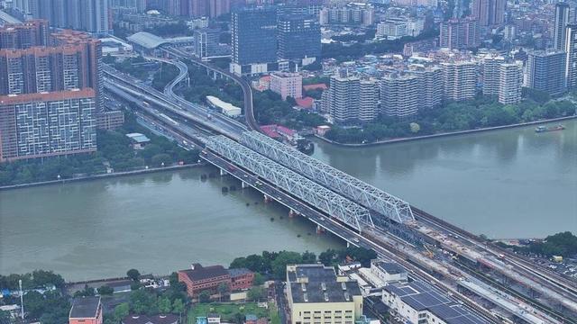 列车自广州白云站开出后,很快经过旧广州八景之一“双桥烟雨”的珠江大桥。