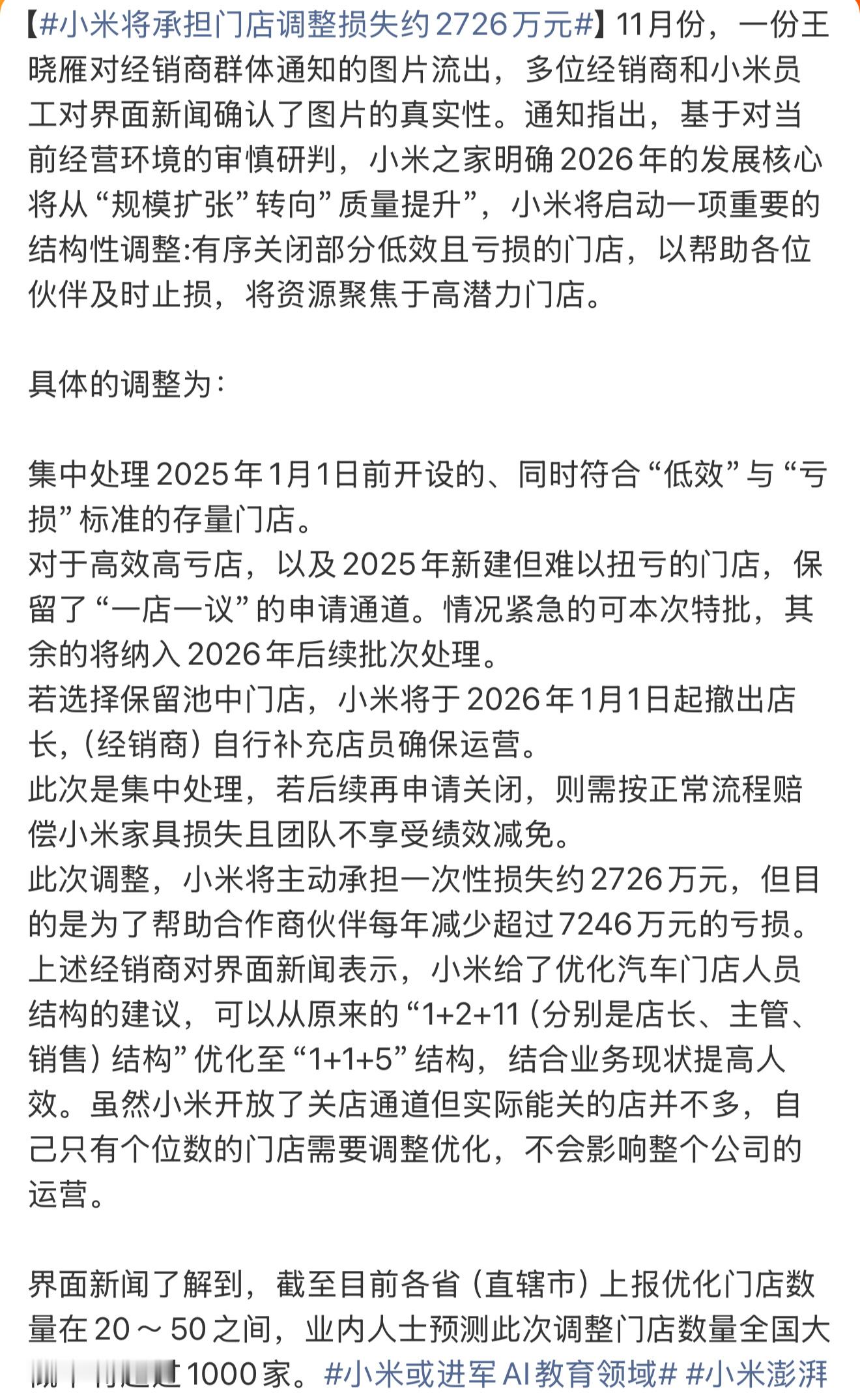 小米将承担门店调整损失约2726万元相比于传统4S店,可以发现这些互联网基底的公司节奏很快,对市场的响应总能更及时点