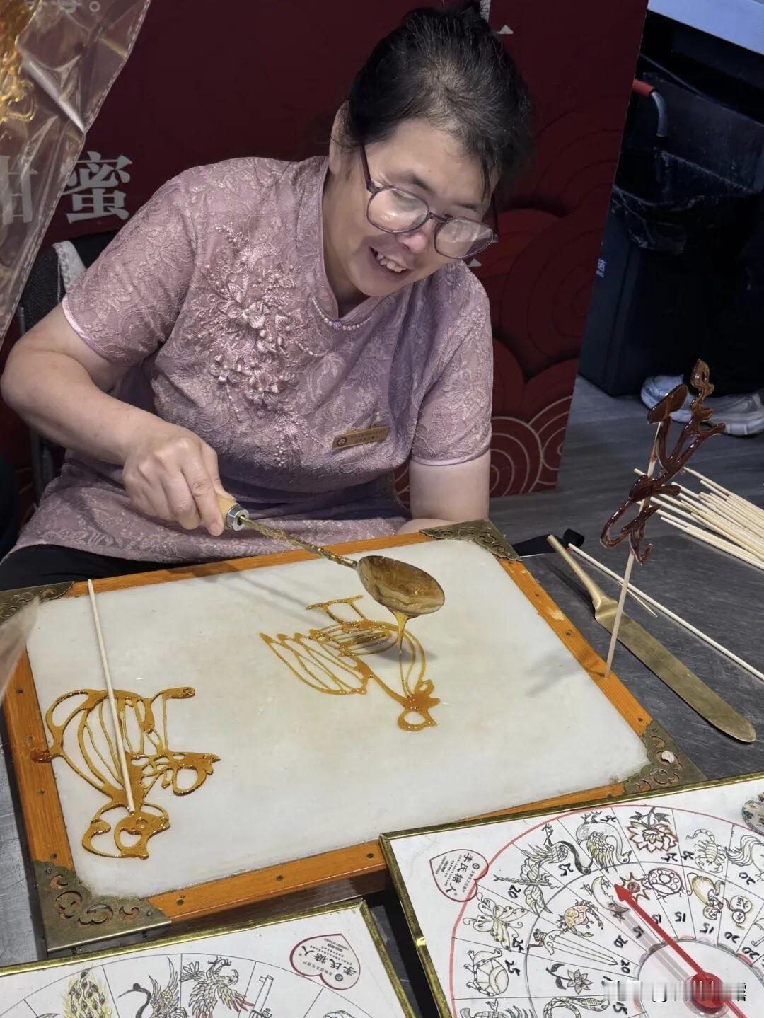 画糖人以糖为“墨”、以勺为“笔”,艺人通过精湛技艺,将糖液在石板上勾勒成十二生肖