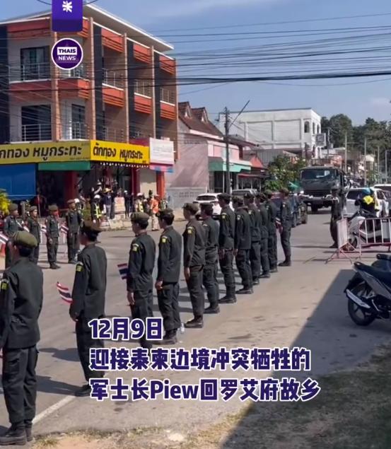泰国军队迎接战死的英雄回家! 在泰柬边境冲突牺牲的军士长皮罗,遗体被送回罗艾府故乡,大量泰国军人和民众来送行!截止到12月10日中午12点,有两名泰国士兵,在柬泰边境冲突中阵亡,受伤人数更多,目前还在扩大伤亡数字。之前博主看到有两三名泰国士兵,胸口被子弹击中,但幸亏是穿了避弹衣,但仍然造成胸部的巨大的冲击。 不过胸口会红肿一段时间,休养一段时间就好,所以现在想要靠子弹击杀一名士兵是很难的,除非是打到了头部。打到了胸部和腿部,都是可以想办法救回来的,打到手臂也是可以救的。所有泰国士兵伤亡数字较小。 而柬埔寨方面因为泰国方面的火炮,比较猛烈,加上战斗机轰炸,伤亡数字会更大。泰国方面对自己阵亡的士兵,也算是比较尊重,全都赶过来为自己的英雄送行,这也是必要的。 说到底柬埔寨和泰国两方各自阵亡的官兵,都是各自国家的英雄,都值得予以纪念和送行。 但是这一次两方冲突,还没有协调方出来,因为在七月底的冲突当中,多个国家出来出面协调。虽然最终停战,但现在宣告失败,停战之后又冲突,这样的话,打起来就更危险了。