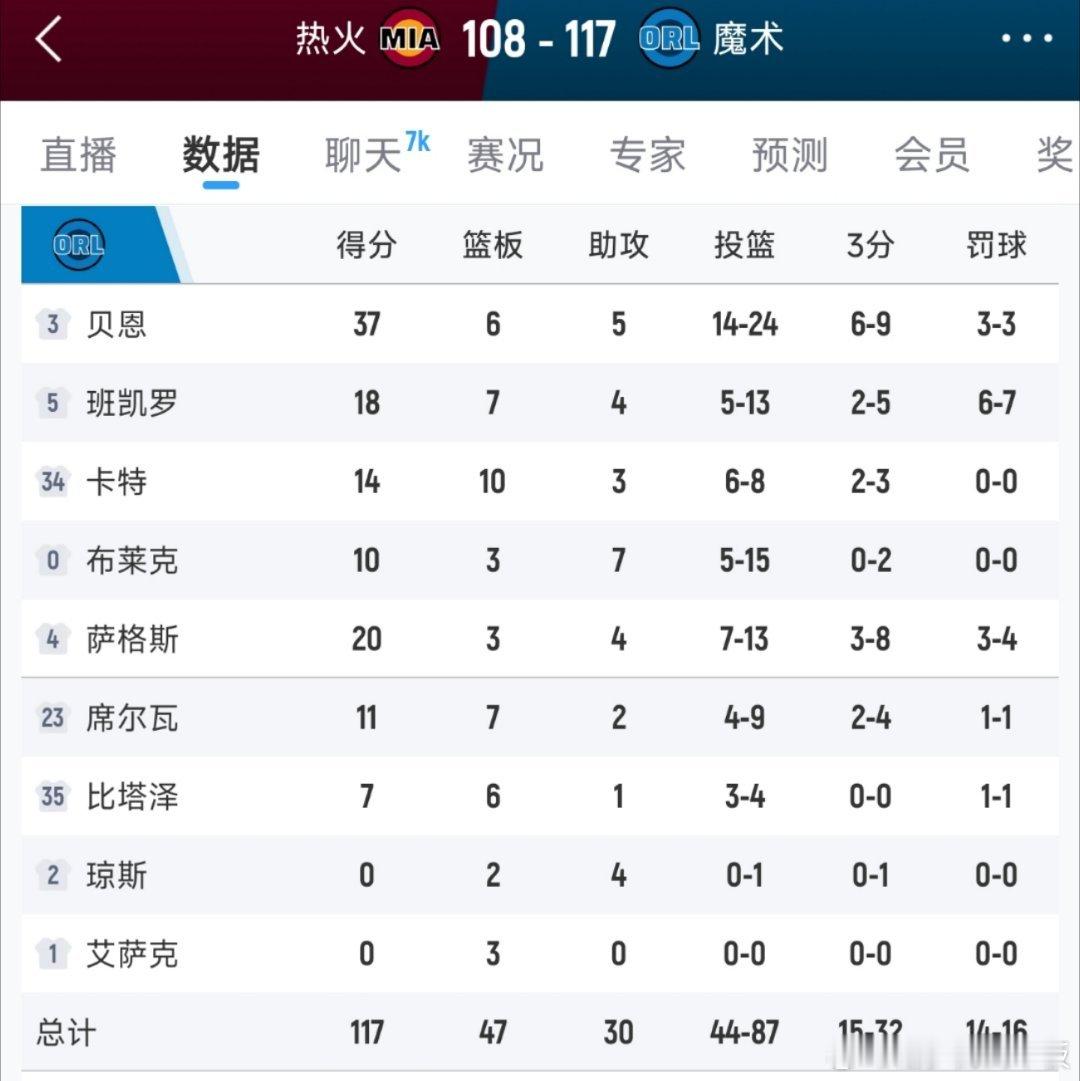 魔术主场117-108战胜热火,晋级杯赛半决赛!鲍威尔21分,希罗20分,贝恩37分6板5助热火vs魔术