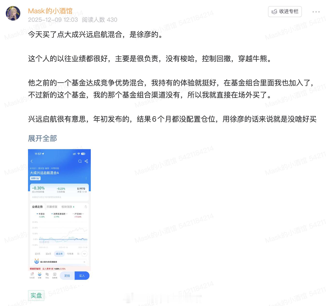 白酒心理按摩,如何回本+投资总结一、波动这件事,你得习惯这几天大家回调,我也回调,大家绿,我也绿,包括白酒,现在场外也亏了快6个点了:a所以你们经历的,我也正在经历。但说真的,最近这点波动,在我的投资生涯里,真的太正常了。你要是经历过2015年的股灾、2018年的贸易战、2020年的疫情暴跌,你就会发现,现在这点回调,连那时候的零头都算不上。但为什么每次市场一跌,就有一大批人睡不着觉?因为他们只记得赚钱的时候有多爽,忘了投资本来就是涨涨跌跌的游戏。你见过只涨不跌的市场吗?不存在的。就像天气不可能永远晴天,股市也不可能永远上涨。有阳光明媚的日子,就有阴雨连绵的时候。关键是,下雨的时候你是淋成落汤鸡,还是早就备好了伞。二、别光看亏的,也看看赚的很多人一跌就慌,是因为只盯着亏钱的品种看。今年公号里面,也还是有很多赚钱的品种的。比如今年我们布局的化工板块,赚了;沪深300、中证500,赚了;新能源、光伏、科技、AI双子星、旅游、卫星通信、有色金属、电力、中药、证券,也赚了,这些都是今年有收益的品种。还有之前说的中信保诚,现在拿着的也有20个点了:a我都是提前说的,也不马后炮,可以自己看下时间,6月3号说的,然后6月3号我也买了你看,并不是一片狼藉对吧?当然,有上涨就有回调。这很正常。而且在高位的时候,我们也都减仓、调仓了。注意好控制仓位的话,今年的收获说真的不会差。三、跌下来,其实是给你机会我知道这话听起来像安慰人。但你仔细想想,是不是这个道理?很多好股票、好基金,前段时间涨太快了,想买根本不敢下手。现在跌回来了,反而给了你上车的机会。就像商场打折一样。平时标价1000块的东西,现在700就能买到。你是应该高兴还是难过?当然,前提是这个东西本身是好东西。如果是垃圾,打折也是垃圾。所以问题的关键不是"跌了怎么办",而是"你买的是不是好东西"。如果你买的是优质资产,跌了就是机会。如果你买的是垃圾,涨了也早晚要跌回来。现在一部分人亏钱,有一个共同的特点——追高。我在公号里说了多少次不要追高?我数不清了。但很多人就是管不住自己的手。看到某家公司涨了,立刻上头,怕错过,赶紧冲进去。结果呢?你一买它就开始跌,好像主力专门在等你一样。这不是玄学,这是人性。当一个东西涨得很猛的时候,市场情绪已经过热了。这时候你冲进去,本质上是在高位接盘。后面只要稍微有点回调,你就被套了。好公司还需要好价格。这句话我说了无数遍,但真正能做到的人太少了。大家都知道买东西要买便宜的,去菜市场买菜都要货比三家,但一到股市里就完全不讲道理。涨得越多越想买,跌得越多越不敢碰。这是反人性的。但投资这件事,往往就是需要反人性。四、心态崩了?问题出在仓位上说完大道理,我们来聊点实际的。很多人心态不稳的原因,说白了就一个:仓位管理没做好。什么叫仓位管理?简单说就是:你不能把所有钱都押在一个地方。有些人一买就是满仓、一买就是重仓某一个股票或者某一个板块。涨的时候当然爽,跌的时候就是山崩地裂。你想啊,如果你把全部身家都押在一个品种上,它跌20%,你就亏20%。但如果你把仓位分成10份,这个品种只占10%,它跌20%,你整体才亏2%。同样的回调,不同的仓位,完全不同的感受。想要重仓吃大肉,也需要自己有一颗强大的心脏。普通人还是扎扎实实,从小的方面一步步做起。所以我的建议是:如果你心态差,那就老老实实去搞点固收、短债。 这种东西波动小,收益也少,但胜在稳定。晚上能睡着觉比什么都重要。如果你追求更高收益,那就把仓位分成10份,品种之间的关联度降低。 股票、债券、商品、不同行业、不同市场,分散开来。这样某一个品种跌了,其他的可能在涨,整体波动就小很多。仓位管理的本质,不是让你赚得更多,而是让你亏得更少、拿得更稳。你能拿得住,才能等到赚钱的那一天。你拿不住,天天割来割去,神仙也帮不了你。说到这里,我必须承认一件事。我们也不是神,是人。是人就会犯错。有些朋友可能对我期望太高了,觉得我说的每一个品种都应该涨,每一次操作都应该对。这不可能。如果我们能做到买什么涨什么,那巴菲特都得跑到中国来喊我一声大哥。今年有涨的品种,但也有回调的品种。我们高位的时候也减仓了,现在跌回来其实也是给我们新的机会。这就是投资。有对有错,有赚有亏。关键是,这次错了,下次做回来就好了。但前提是什么?还是那句话——管理好自己的仓位。仓位管好了,你才有"下次"的机会。仓位管不好,一把梭哈错了,直接回到解放前。五、白酒怎么办?最近问白酒的人特别多,我单独说一下。白酒最近确实跌得比较快。从12月初到现在,很多白酒股和白酒基金都有明显回调。但说实话,如果你是控制了仓位,白酒控制在10%的样子,那我们之前赚的钱,完全可以覆盖白酒的亏损。包括我组合里面也配置了白酒,但是仓位也是控制在10%,没有突破这个上限。今年赚了那么多,基本都是赚的,难道一个白酒的亏损还覆盖不了吗?如果覆盖不了,说明一是之前的文章没有看,二是白酒的仓位给大了。白酒现在这一波下跌的速度很快,我也跌了,之前场外赚钱的白酒,现在也亏了五六个点了。但你要知道一件事:跌得快,反弹通常也快。所以我的判断是:这里随时都存在反弹的可能。那操作上怎么办?如果你拿得