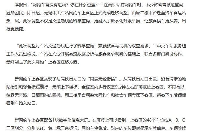 锡锡相关【无锡中央车站网约车上客区升级】“网约车有没有进场?停在什么位置?”在高铁站打网约车时,不少旅客曾被这些问题所困扰。近日,无锡中央车站网约车上客区正式完成迁移调整,由原二楼平台迁至汽车客运站负一层。此次调整不仅是交通动线的科学重构,更融入了数字化升级举措,让旅客候车更从容、出行更便捷。详情戳下图↓↓↓(江南晚报)