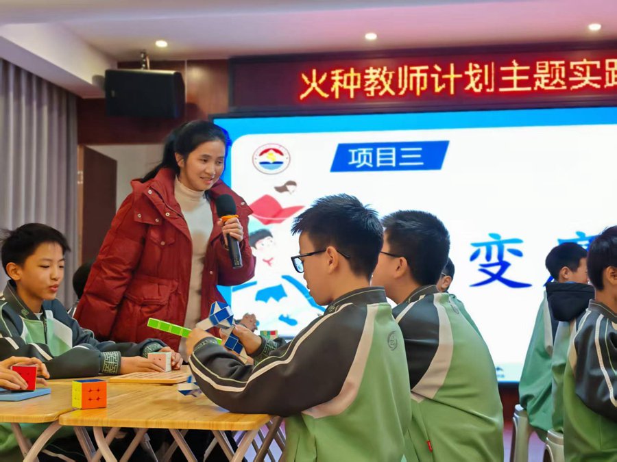 近日,瑞金市沙洲坝镇八一希望学校开展实践活动,以“看见火种,成为火种”为理念,带领学生通过魔方、九连环、魔尺等趣味教具,跳出书本,在动手探索中激活思维。