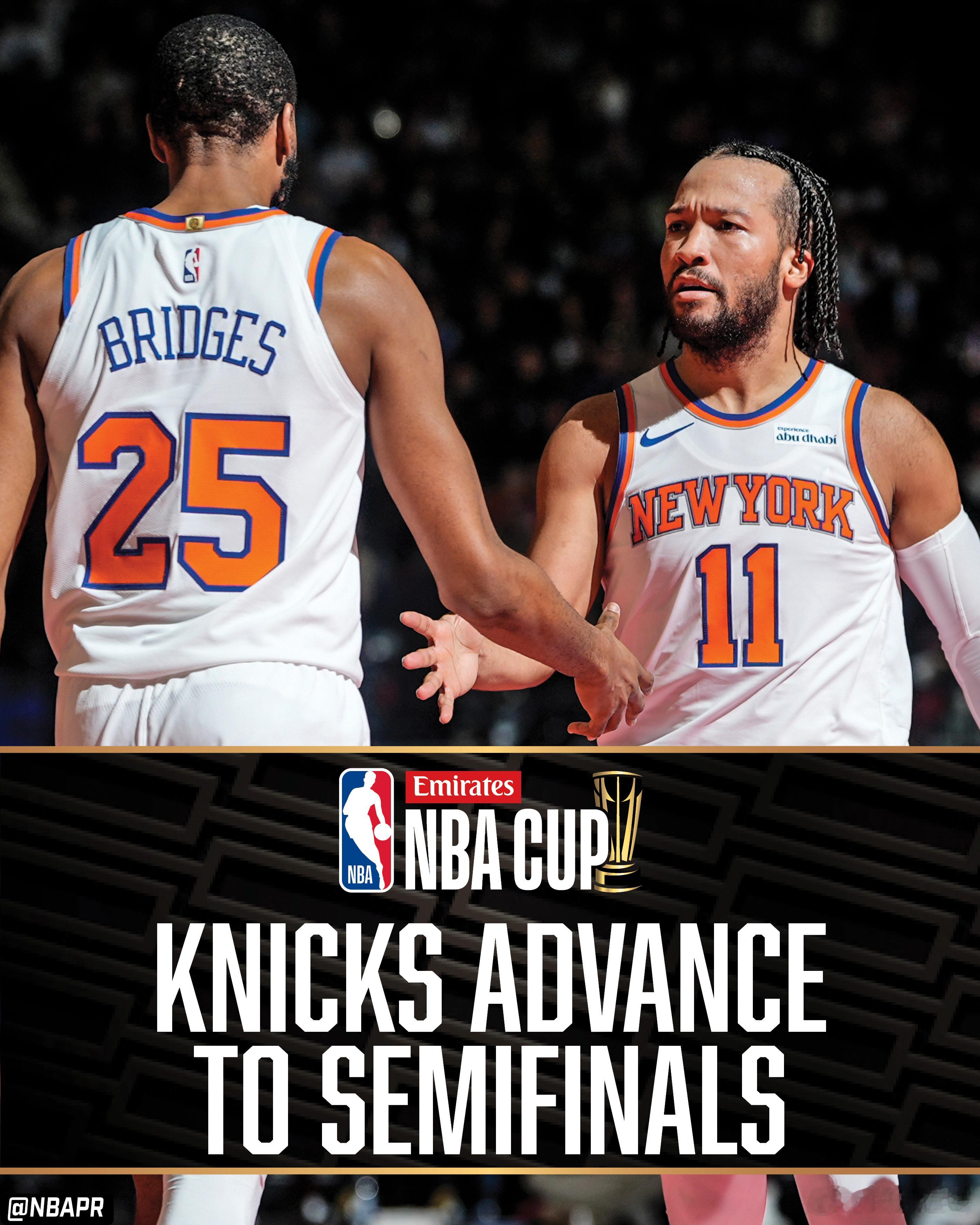 117-101,尼克斯大胜猛龙晋级NBA杯赛半决赛。首节莺歌单节17分对飙布伦森的单节20分,但猛龙在第二节遭遇长时间的断电,单节净负21分。而这21分,也成为了猛龙在剩余比赛时间内一直难以逾越的鸿沟。巴雷特和奎克利的缺阵,以及猛龙阵容深度上的欠缺,也成为猛龙输球的一大原因。NBA杯赛半决赛,尼克斯对阵魔术,前不久刚刚发生冲突的贝恩和阿奴诺比又将见面。尼克斯淘汰猛龙
