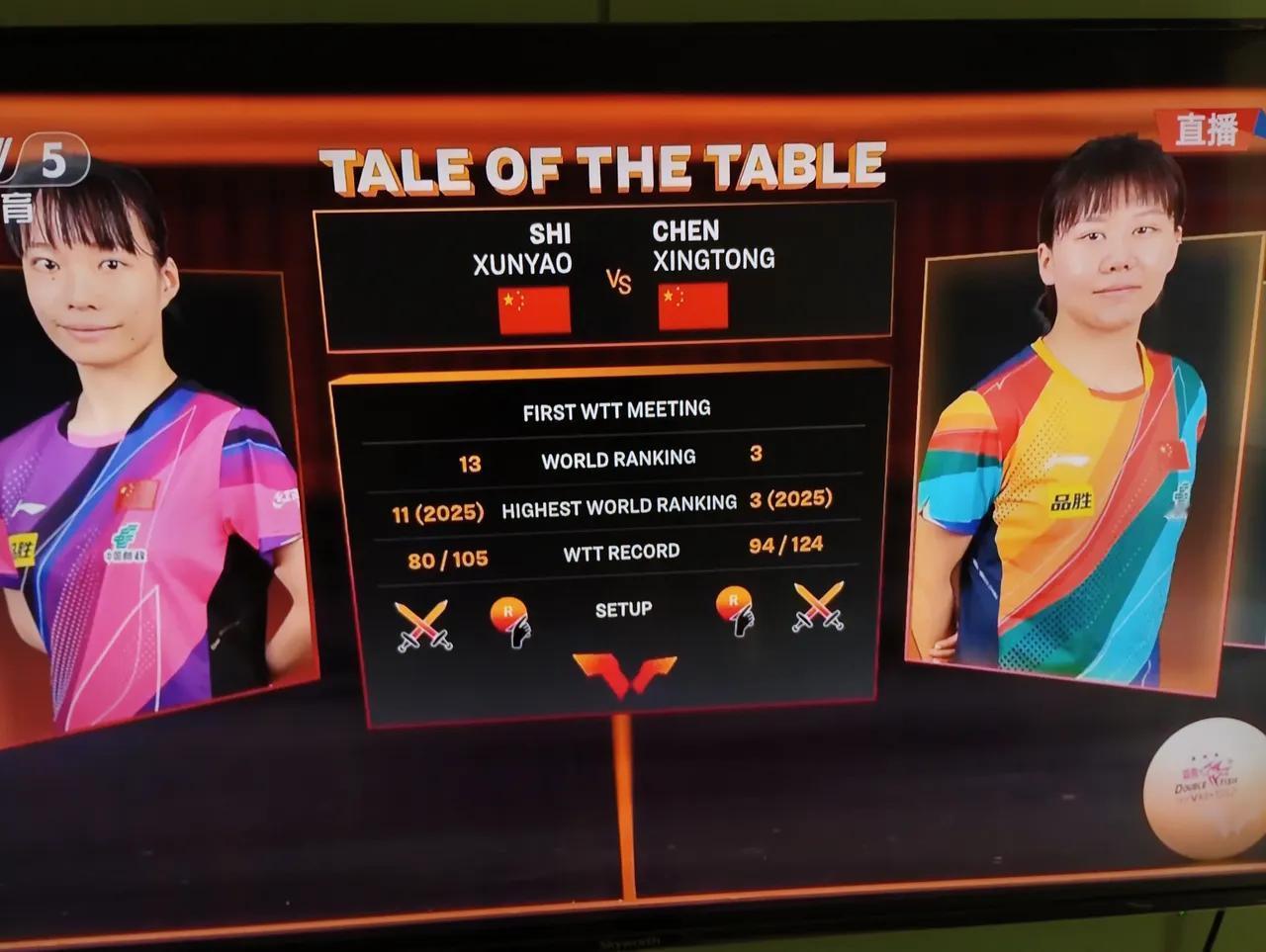 WTT香港总决赛,国乒首场比赛就是女队的内战,陈幸同一石洵瑶,两个人近期的表现都一般,全运会上表现都不好,陈幸同自横滨夺冠后就松气了 石洵瑶也是机会给的很多,但表现不理想。今天看她们谁更想赢,更有拼劲。 第一局石洵瑶11一7陈幸同