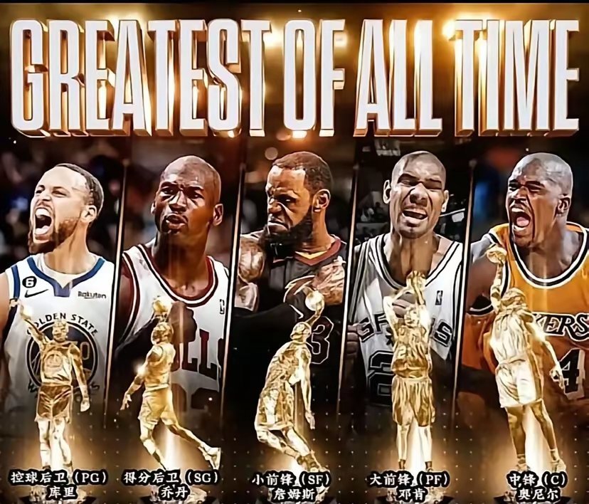 下面五个人,换掉一个,你会选谁?我认为乔丹和奥尼尔应该是雷打不动的,在各自位置上都有着最强的统治力。邓肯和库里也还可以,虽然不是不可替代,但与竞争者也是各有千秋。相较于魔术师,我更倾向于库里。詹姆斯的位置我感觉颇有争议,有了其他4位,他能力就不那么突出了,而且他太占球权。我认为杜兰特是个不错的人选。