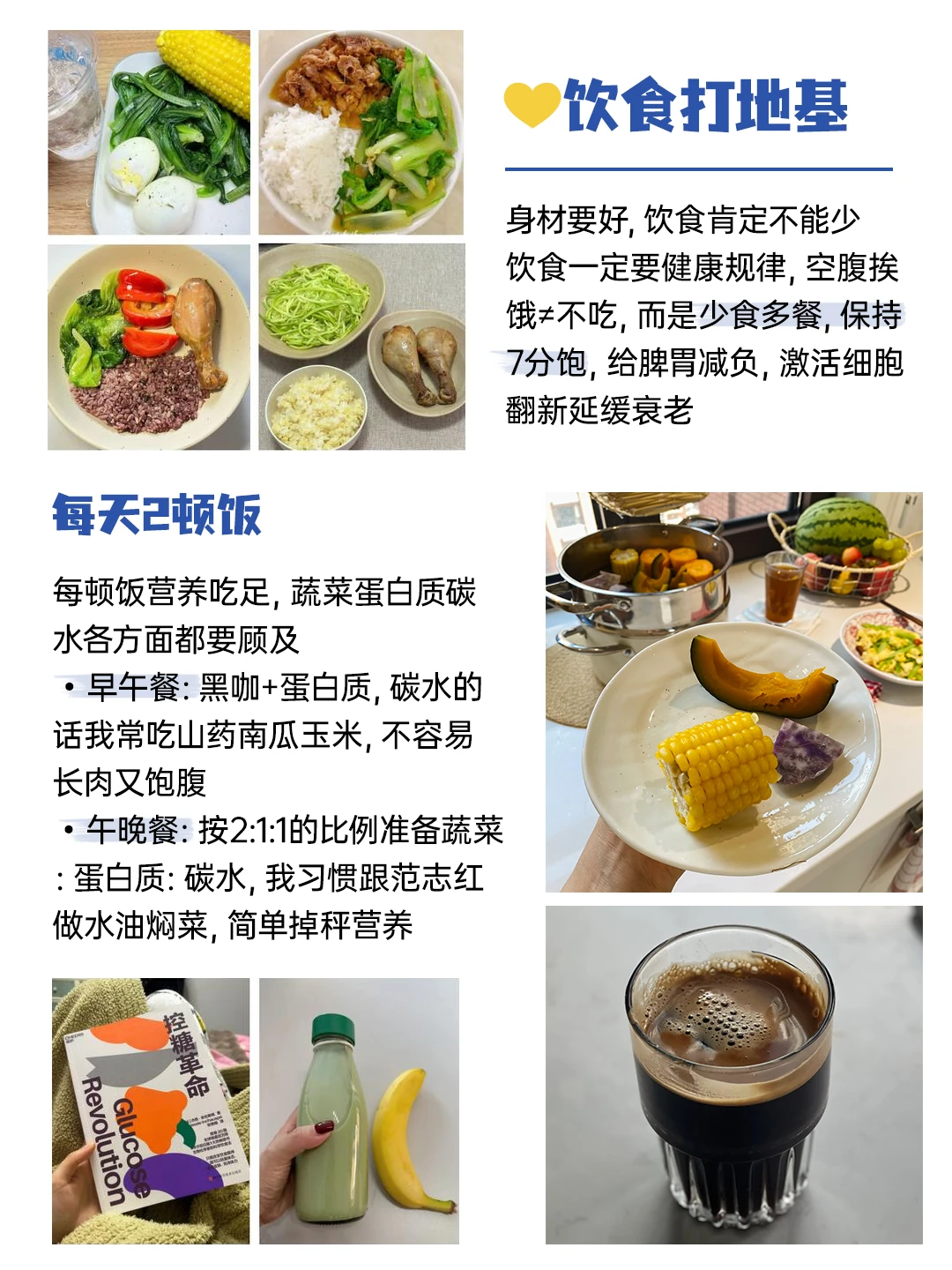 🔸每天2顿饭:每顿饭营养吃足,蔬菜蛋白质碳水各方面都要顾及