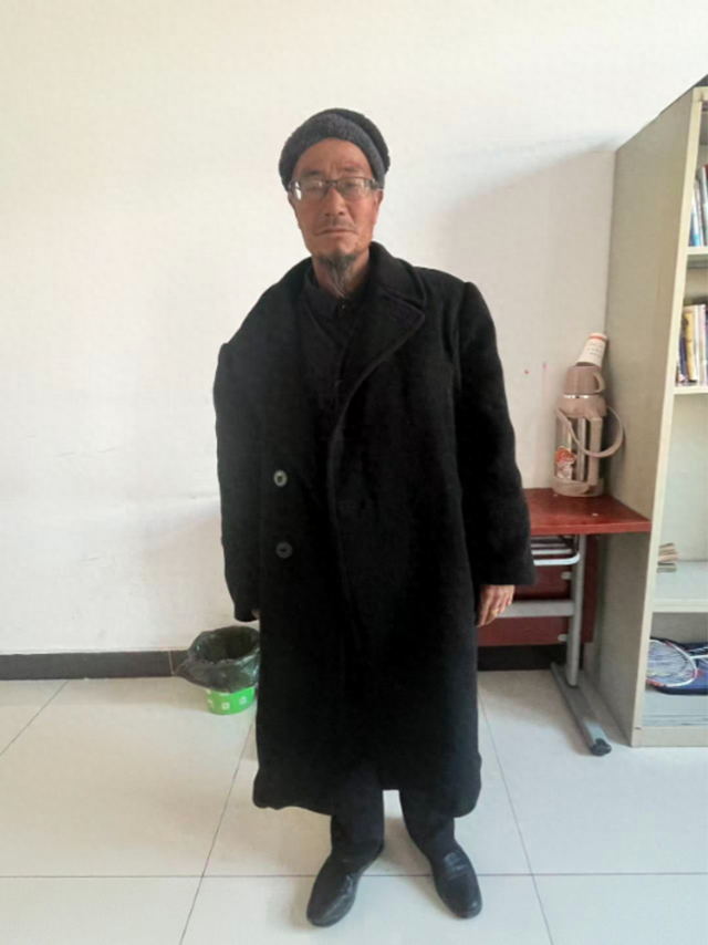 受助者特征:自述叫张贵生,甘肃省定西市人;穿黑色呢子大衣、黑色裤子、黑色皮鞋,戴灰色帽子、眼镜,高约1米7,重55公斤,光头