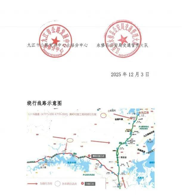 关于对永修县国道316部分路段施工作业交通管制的通告网页链接 因路面养护工程需要,近期计划对国道316进行占道施工,因需处理路基病害,施工时间较长,为推进项目顺利实施,并确保人民群众生命财产及车辆通行安全,根据《中华人民共和国道路交通安全法》等法律法规规定,决定在施工期间对国道316(K777+000-K778+000)实行交通管制。