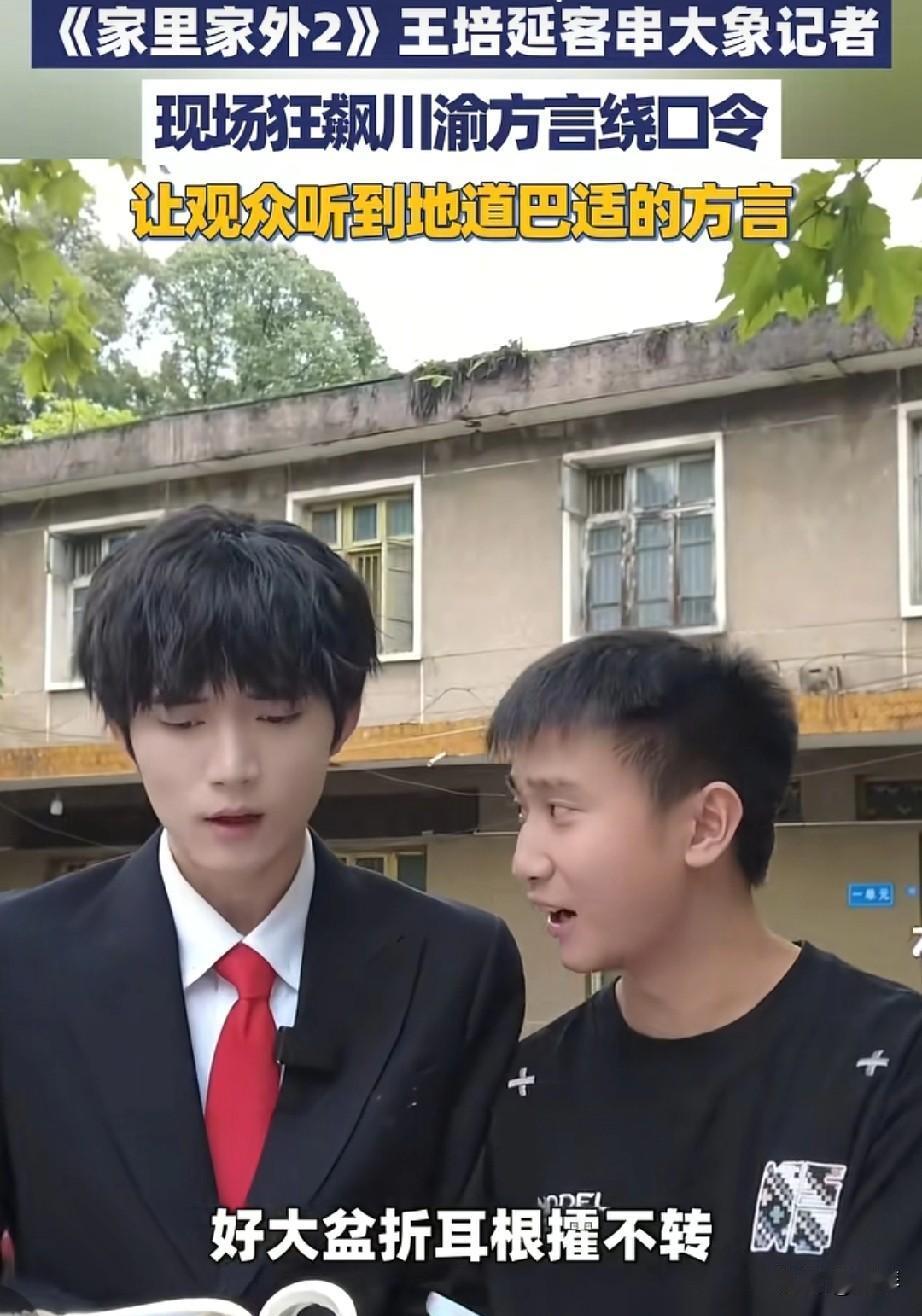 〈家里家外2〉王培延:北京娃在重庆,嘴比火锅还“耙”。 家人们谁懂啊!《家里家外2》里王培延演的北京外甥,来重庆当“大象记者”,穿西装打红领带,端得比解放碑还直,一张嘴——“好大个烟锅巴踩不熄”, 舌头卷得比磁器口麻花还拧, 语言顾问老师在旁边笑到打鸣, 他还一本正经:“这台词,京味儿够浓吧?” 咱就是说,这哪是“家里家外”,这是“北京娃入川变形记”,建议重庆话考级直接把他这段录成听力,毕竟能把“猪脚杆炖不耙”念出儿化音的,全中国找不出第二个![呲牙]   文学创作大会:家里,是温馨港湾,灯光柔和似母亲的目光,饭菜飘香如生活的诗章。家外,是广阔天地,阳光灿烂像青春的梦想,山川壮美如人生的画卷。家里家外,皆是生命中最美的风景。 戳这里👉和我一起作诗词歌赋,赢万元大礼~川渝